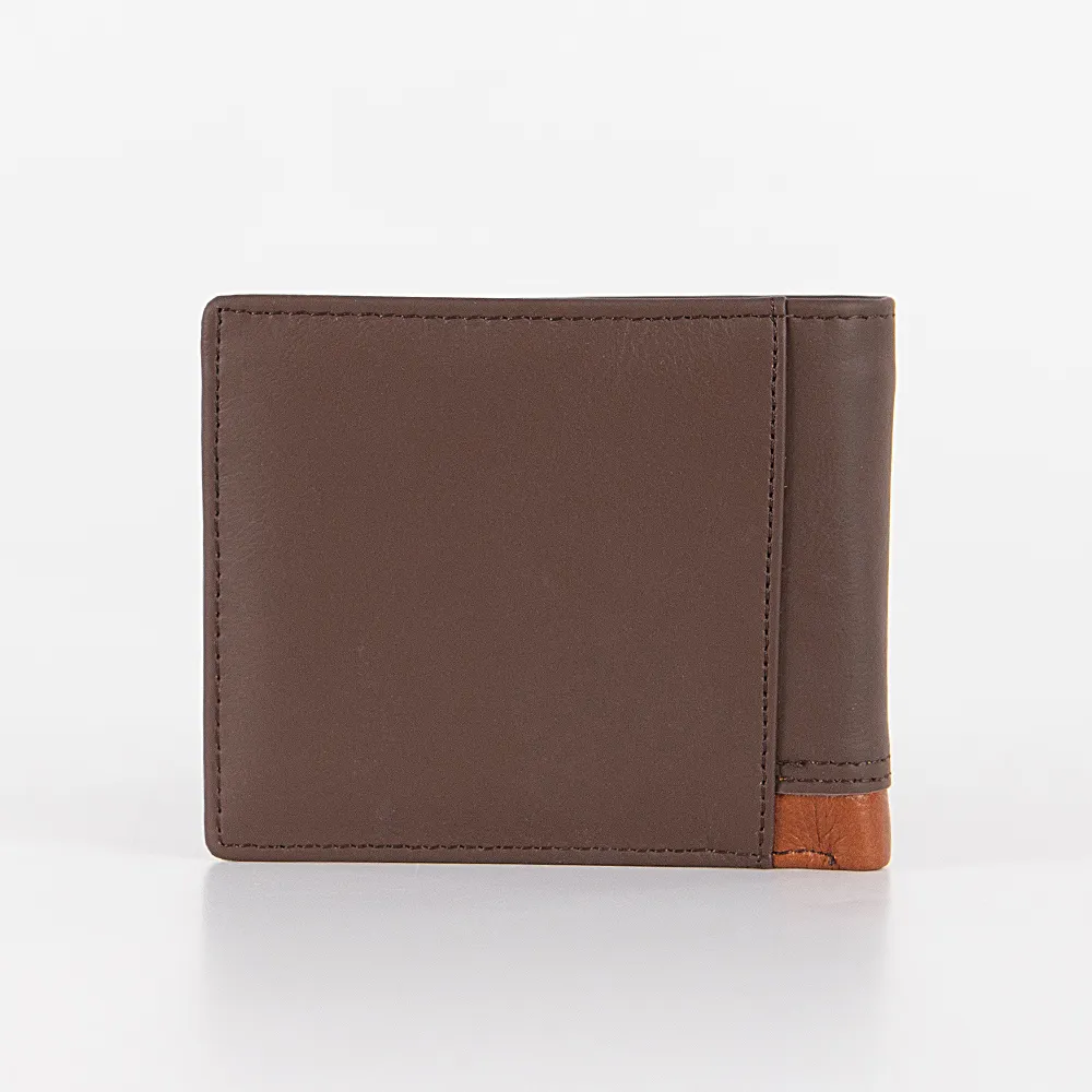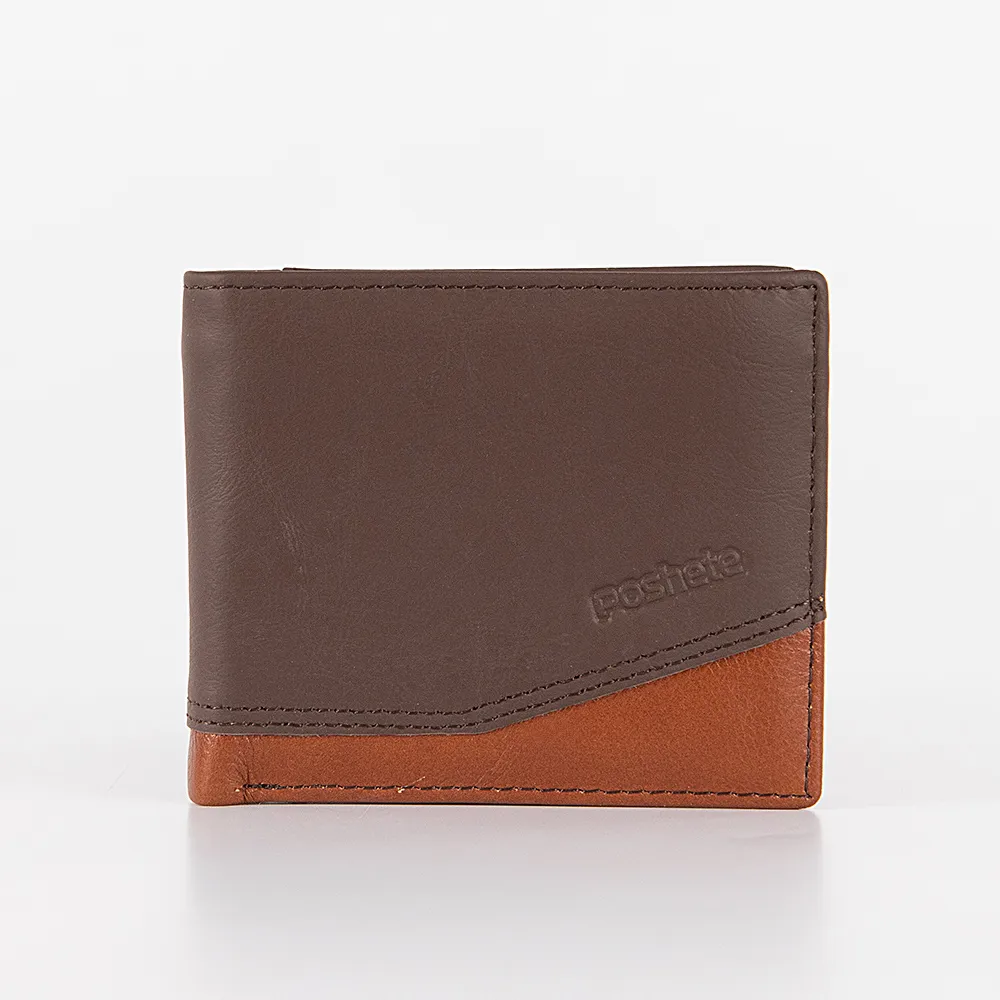 Кошелек от торговой марки Poshete из натуральной кожи в оттенках коричневого цвета. Модель раскрывается книжкой. Внутри: два отделения для купюр, карман на молнии, карманы для карт.