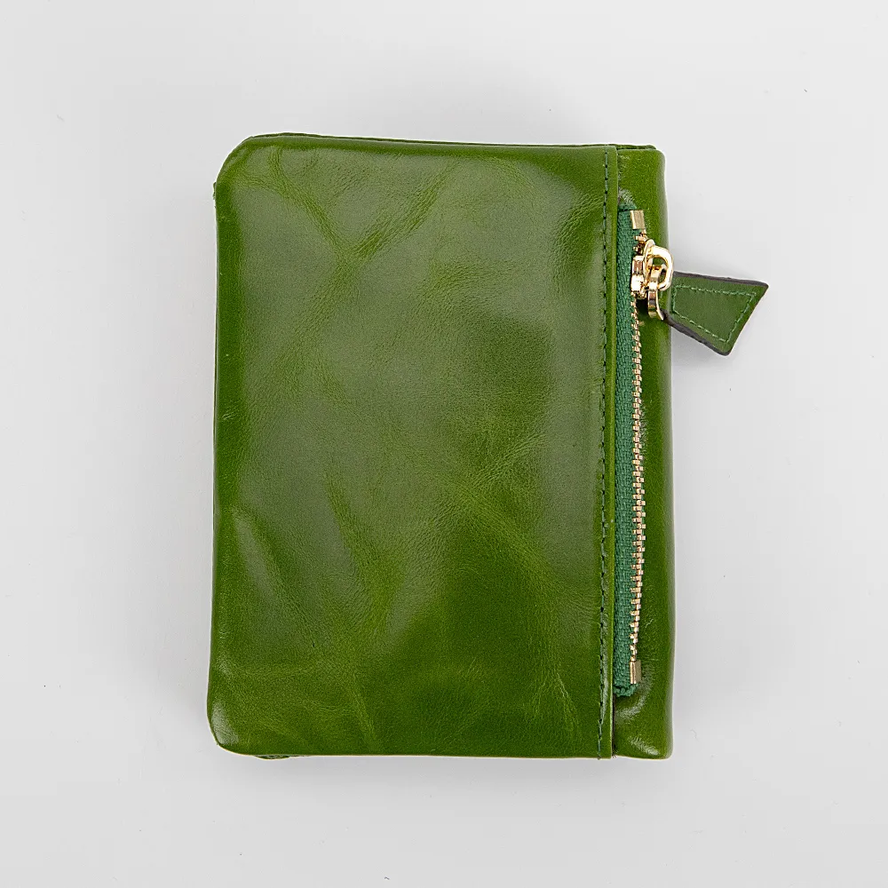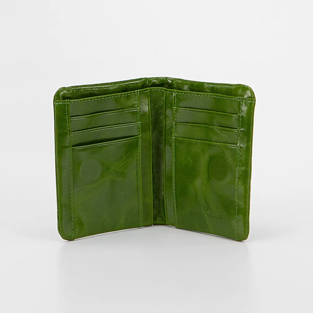 Кошелек от торговой марки Francesco Molinary из натуральной кожи зеленого цвета. Модель имеет одно сложение, раскрывается книжкой; фиксируется скрытым магнитом. Внутри: карманы для карт, отделение для купюр. Снаружи – карман для монет на молнии.