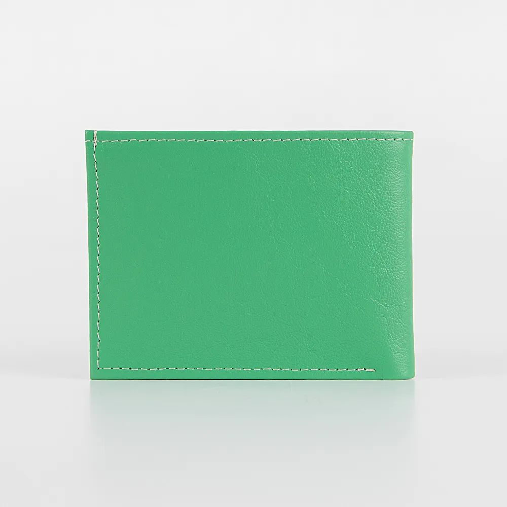 Кошелек от торговой марки Poshete из натуральной кожи зеленого цвета. Модель с одним сложением, раскрывается книжкой. Внутри: отделение для купюр, карманы для карт.