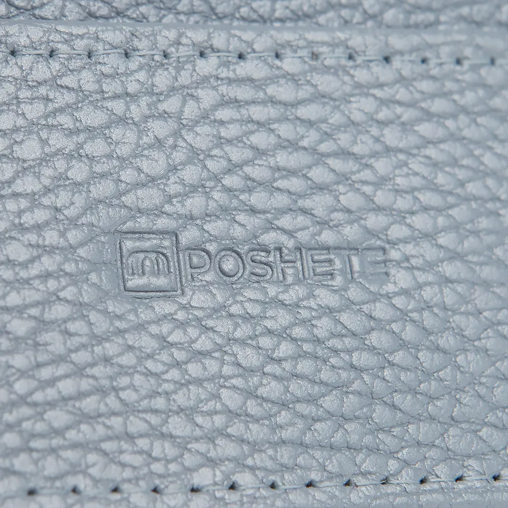 Кредитница от торговой марки Poshete из натуральной кожи голубого цвета. Модель с отделением на молнии и карманами для карт по обеим сторонам.