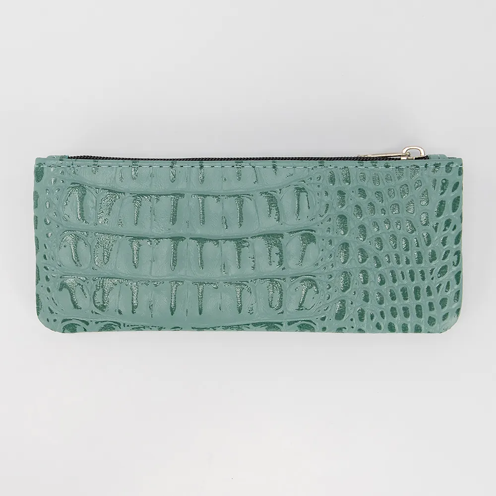 Ключница от торговой марки Poshete выполнена из натуральной кожи мятного цвета с тиснением под крокодила. Отделение на молнии. Внутри: кольцо для крепления. Снаружи имеется карман на молнии.