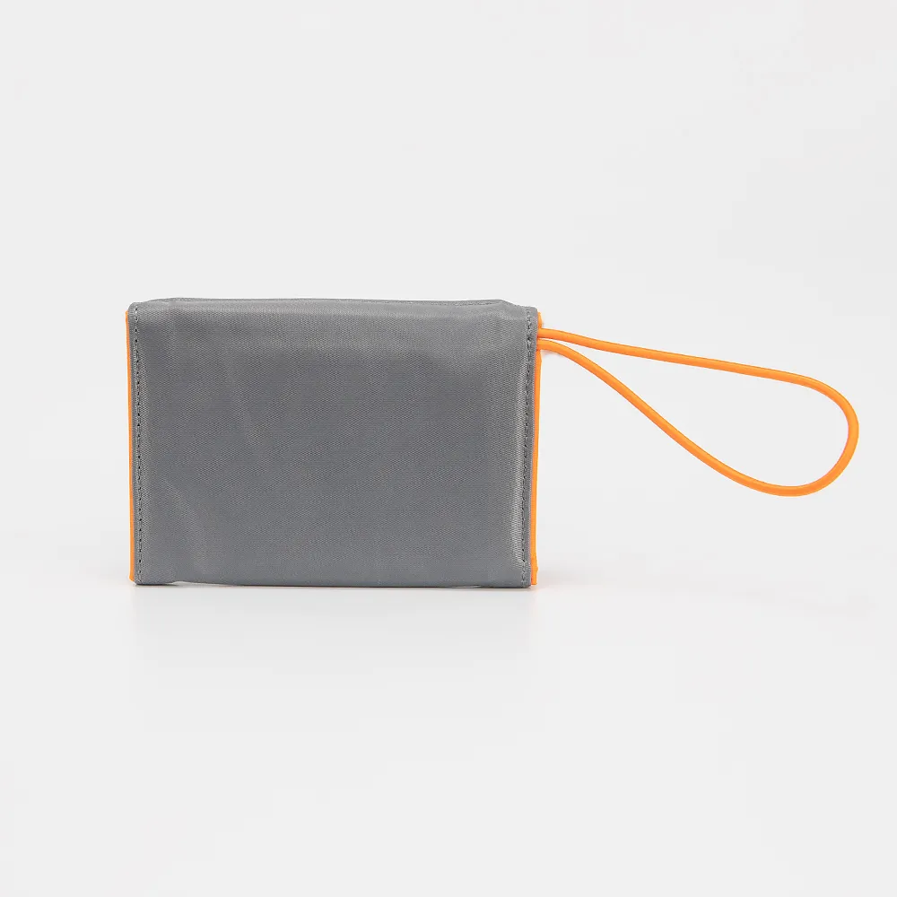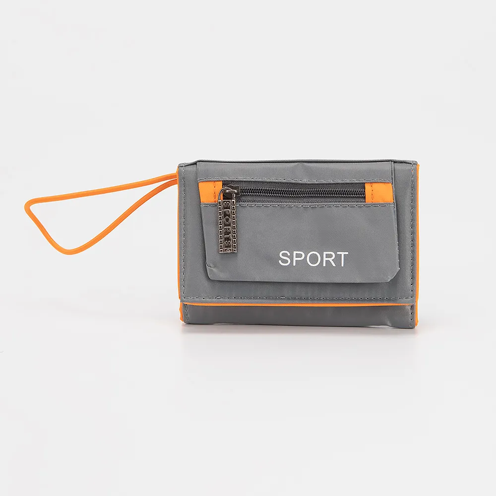 Кошелек Valigetti выполнен из плотного текстильного материала серого цвета. Внутри отделение для купюр, несколько кармашков для карточек и кармашек-окошко. Снаружи карман для монет на молнии. Аксессуар с застежкой на липучку, складывается с двух сторон к центру. Имеется ремешок на запястье.