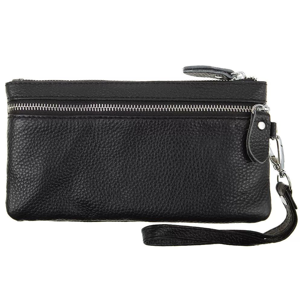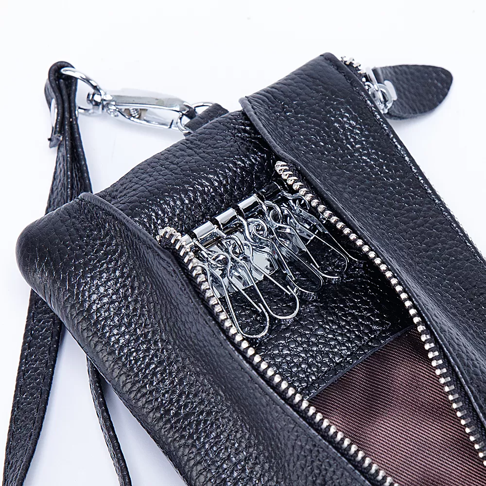 Кошелек-ключница Poshete выполнен из натуральной кожи в черном цвете. Это компактный аксессуар с съемной ручкой на запястье. Три отделения украшены серебристой фурнитурой, а внутри основного отделения есть накладной карман. Эта модель не только вместит купюры и карты, но и позволит удобно разместить ключи. Она станет стильным и функциональным дополнением вашего образа.