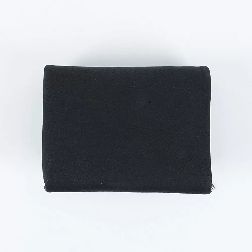 Модель среднего размера обладает двумя сложенными секциями, которые фиксируются магнитом. Внутри кошелечка есть одно отделение для купюр и пять отделений для пластиковых карт, а также карман-окошко на боковой части и карман на молнии для мелких предметов.