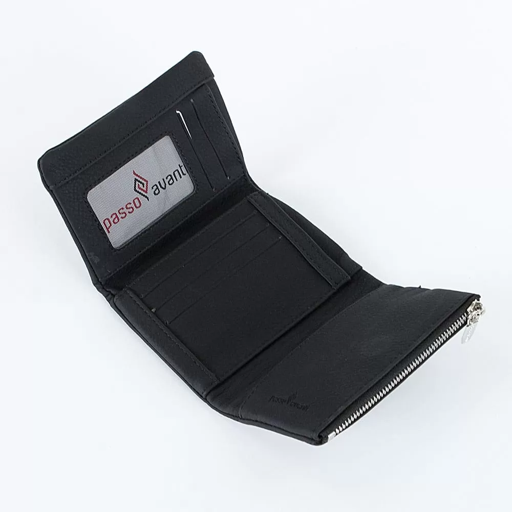 Кошелек Passo Avanti, выполненный из искусственной кожи, представлен в черном цвете.
