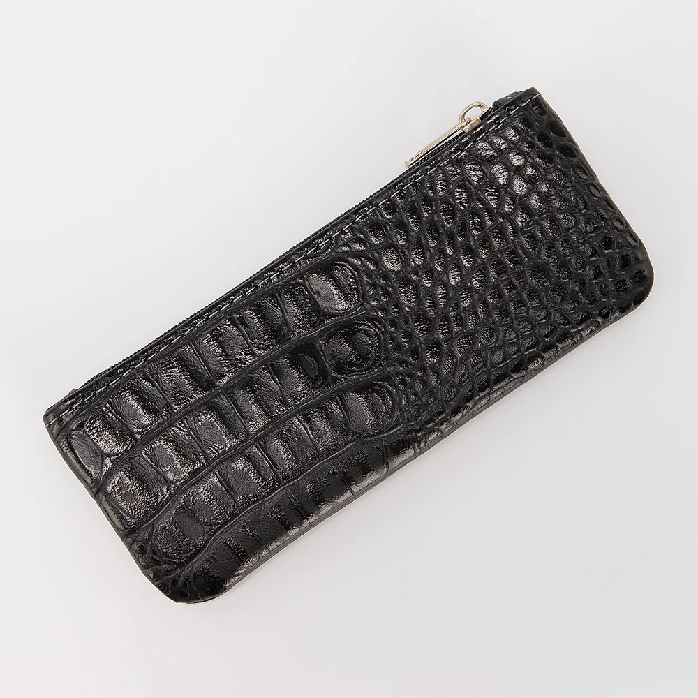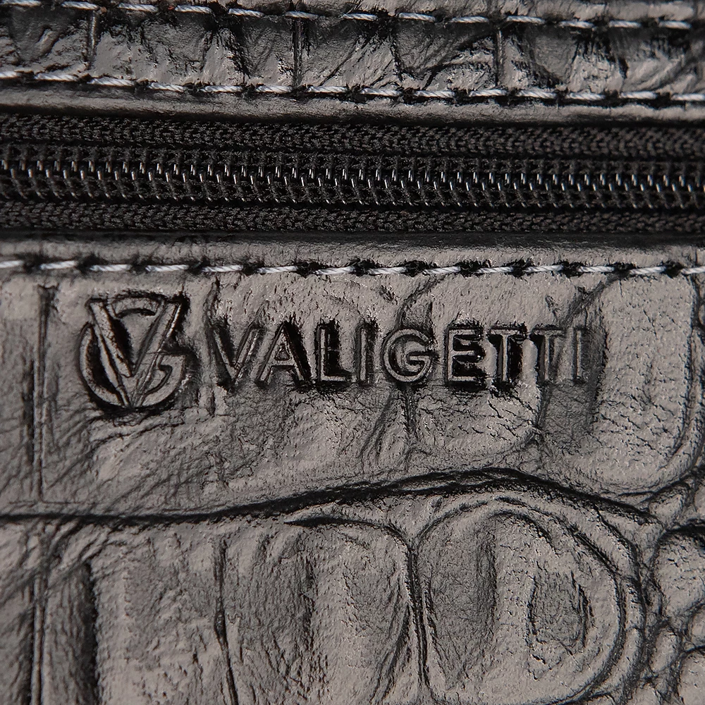 Ключница от бренда Valigetti выполнена из натуральной кожи черного цвета с тиснением под крокодила. Отделение на молнии. Внутри: кольцо для крепления. Снаружи имеется карман на молнии.