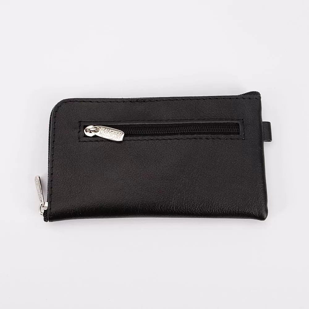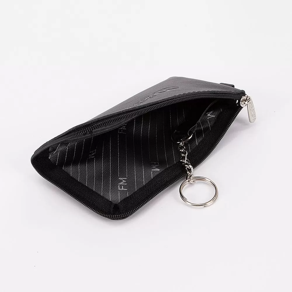 Компактная ключница бренда Francesco Molinary, выполненная из натуральной кожи, представлена в черном цвете. Модель имеет удобный карман сзади. Внутри расположены фирменная подкладка и кольцо для хранения ключей. Эта ключница поможет вам всегда держать ключи в одном месте и сохранить подкладку в идеальном состоянии на долгие годы.