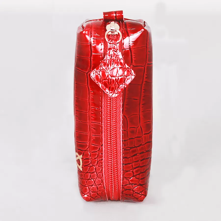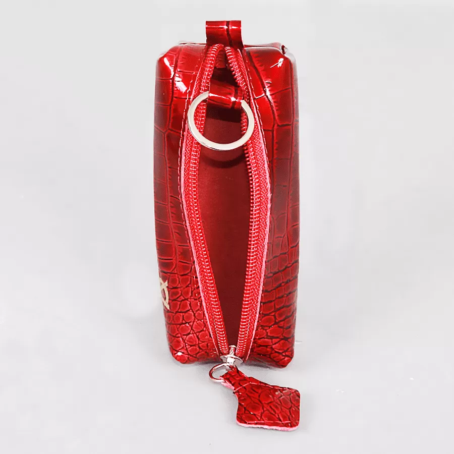 Компактная ключница Poshete из натуральной кожи выполнена в цвете бордо и стилизована под кожу змеи. Модель закрывается на молнию. Используя эту ключницу, вы сможете не только хранить все ключи в одном месте, но и защитить подкладку своей сумки на долгие годы.