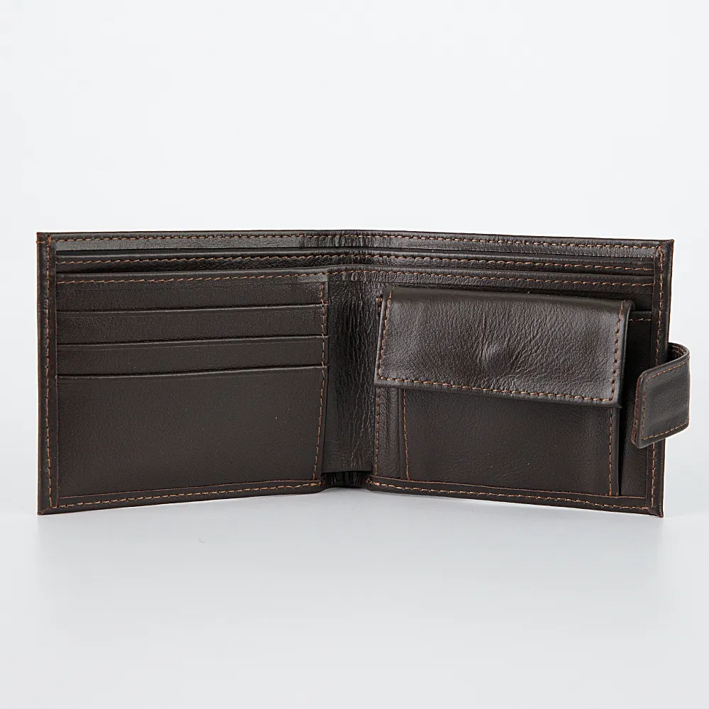 Мужской кошелек от бренда Poshete выполнен в коричневом цвете и дополнен тиснением логотипа бренда. Модель из натуральной мягкой кожи, с двумя отделениями для купюр, несколькими прорезями для пластиковых карт и небольшим карманом для монет на кнопке.