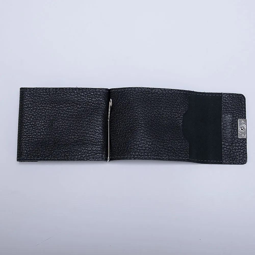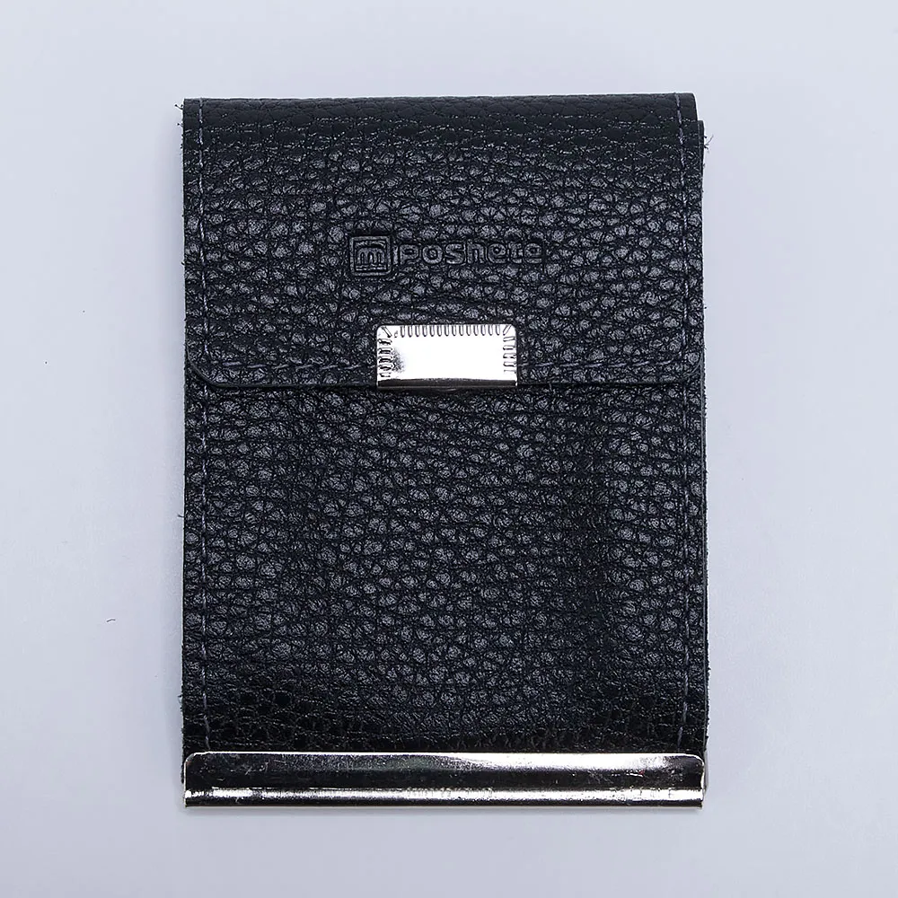 Классический зажим для денег от Poshete выполнен в черном цвете из натурально кожи с естественной фактурой и дополнен серебристой металлической фурнитурой.