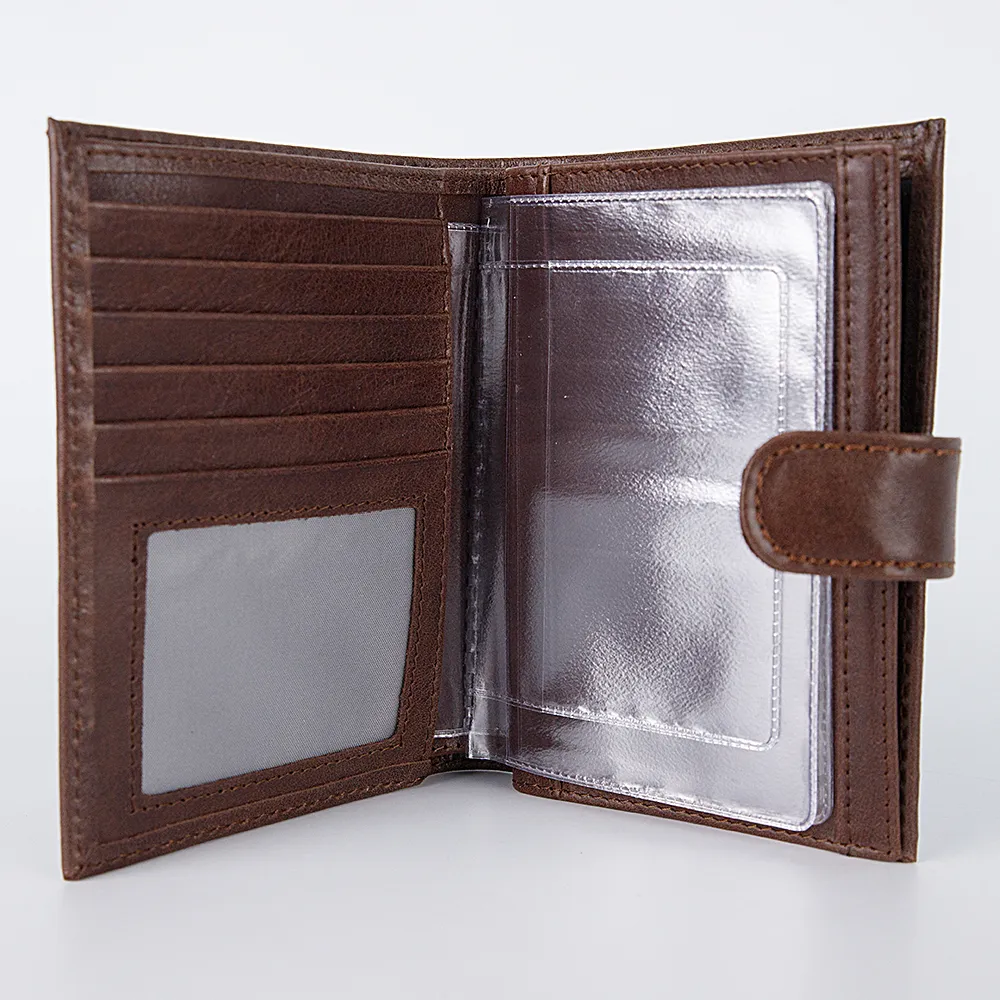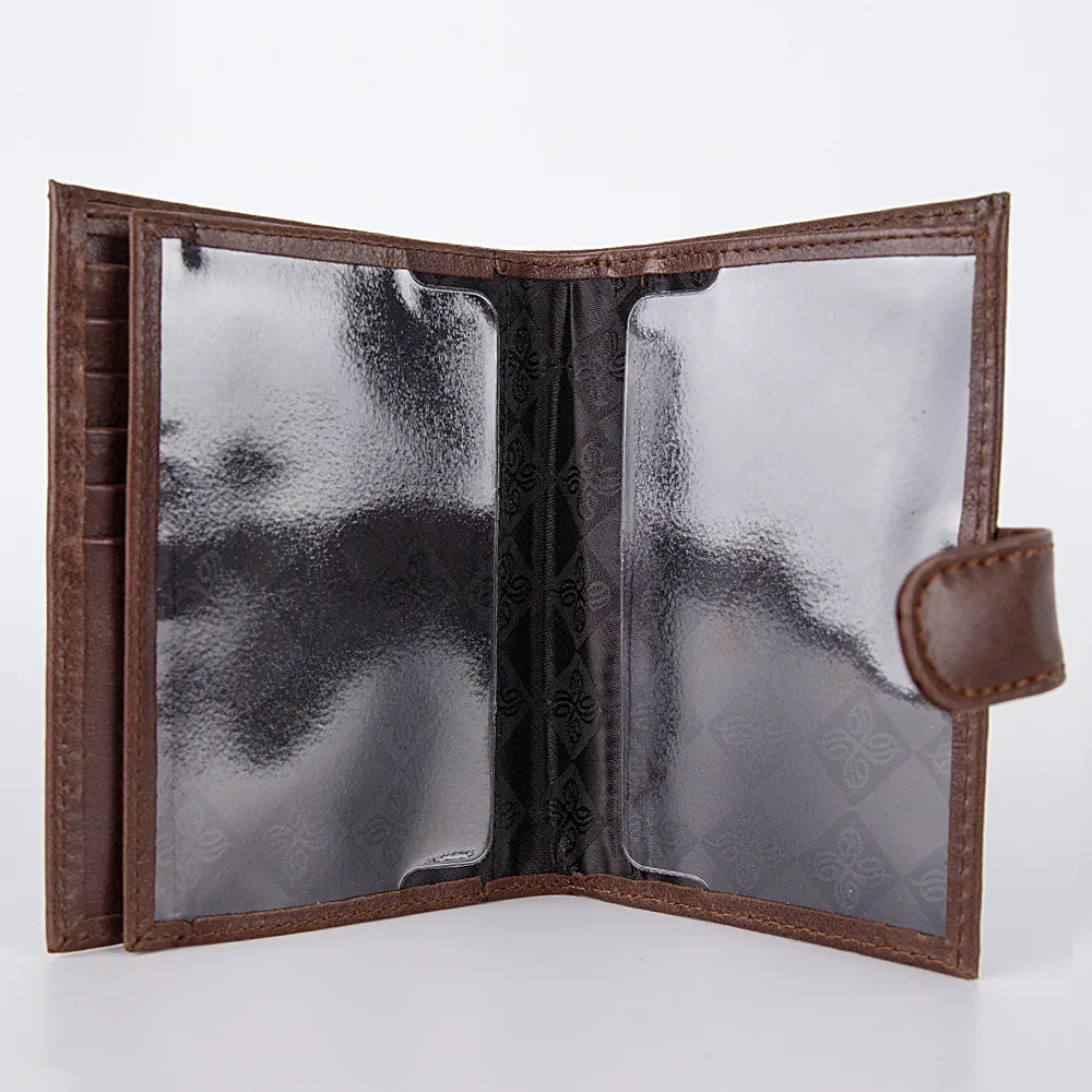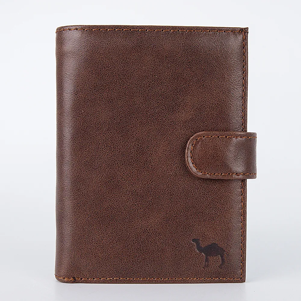 Бумажник мужской Dimanche выполнен из натуральной кожи с вниманием к деталям, в коричневом цвете с изображением верблюда. Застёгивается ремешком на кнопку, раскрывается книжкой, внутри текстильная подкладка, отделение для купюр, кармашки для пластиковых карт, отсек для паспорта и пластиковые прозрачные карманы для документов.