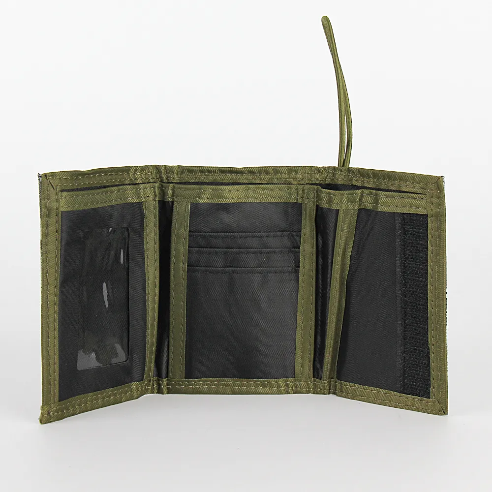 Кошелек от торговой марки Ecotope из текстильного материала черного цвета с принтом «камуфляж». Модель имеет два сложения; фиксируется липучкой. Внутри: отделение для купюр, карман на молнии, карманы для карт, карман-окошко. На задней стороне – карман на молнии. Имеется петля-резинка для ношения и крепления.