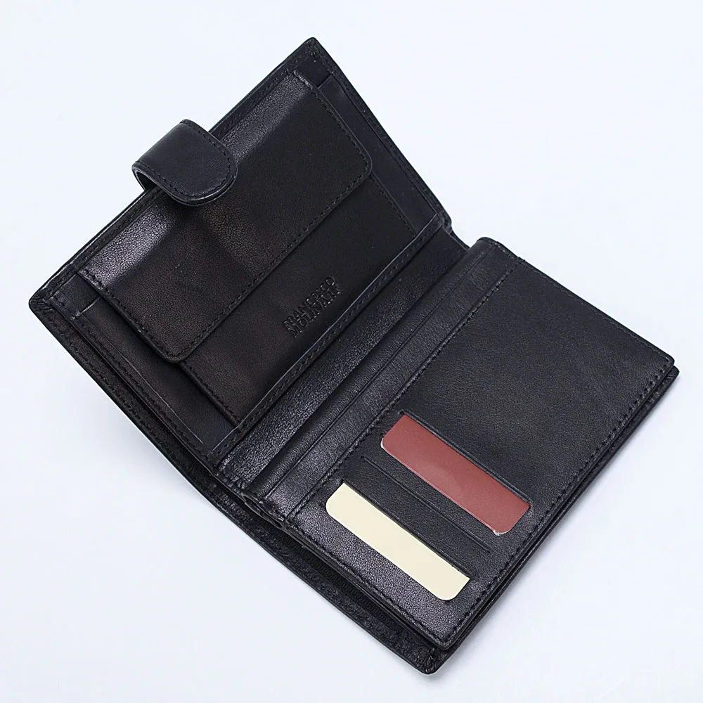 Стильный мужской кошелек Francesco Molinary из натуральной мягкой кожи с естественной фактурой и серебристой металлической фурнитурой. Внутри два отделения для купюр, карман для монет на кнопке, несколько прорезей для пластиковых карт и отделение для паспорта. Аксессуар с застежкой на кнопку.