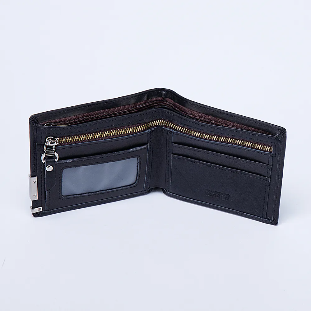 Мужской кошелёк от бренда Francesco Molinary чёрного цвета, с отличным качеством отделки, выполнен из натуральной кожи с внутренней подкладкой из текстильного материала. Квадратной формы, складывается пополам, раскрывается книжкой, без застёжки. Внутри отделение для купюр, карман на молнии, кармашки для карточек.