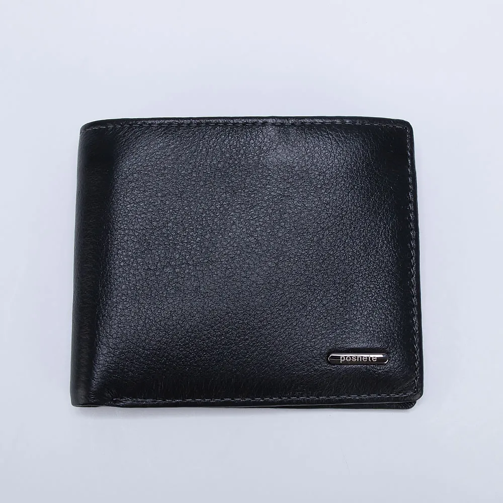 Кошелек от торговой марки Poshete из натуральной кожи черного цвета. Модель имеет одно сложение, раскрывается книжкой. Внутри – отделения для купюр, карманы для карт, карман на молнии для монет.