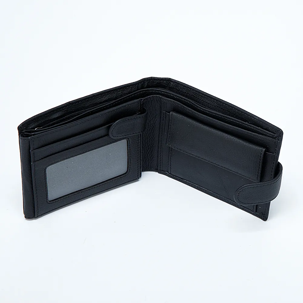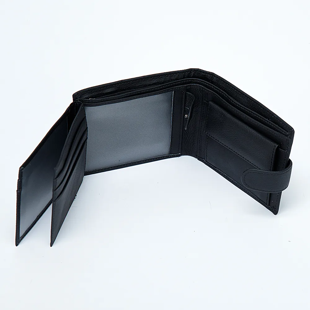 Мужской кошелек известного бренда Poshete сшит из качественной натуральной кожи базового черного цвета. Внутри отделения для купюр, отделение на кнопке для монет, несколько отсеков для пластиковых карт. В кармашке с полупрозрачным окошком удобно хранить пропуск или удостоверение. Аксессуар закрывается на узкий клапан, с лицевой стороны декорирован фирменным тиснением, а внутри - хлястиком на кнопке.