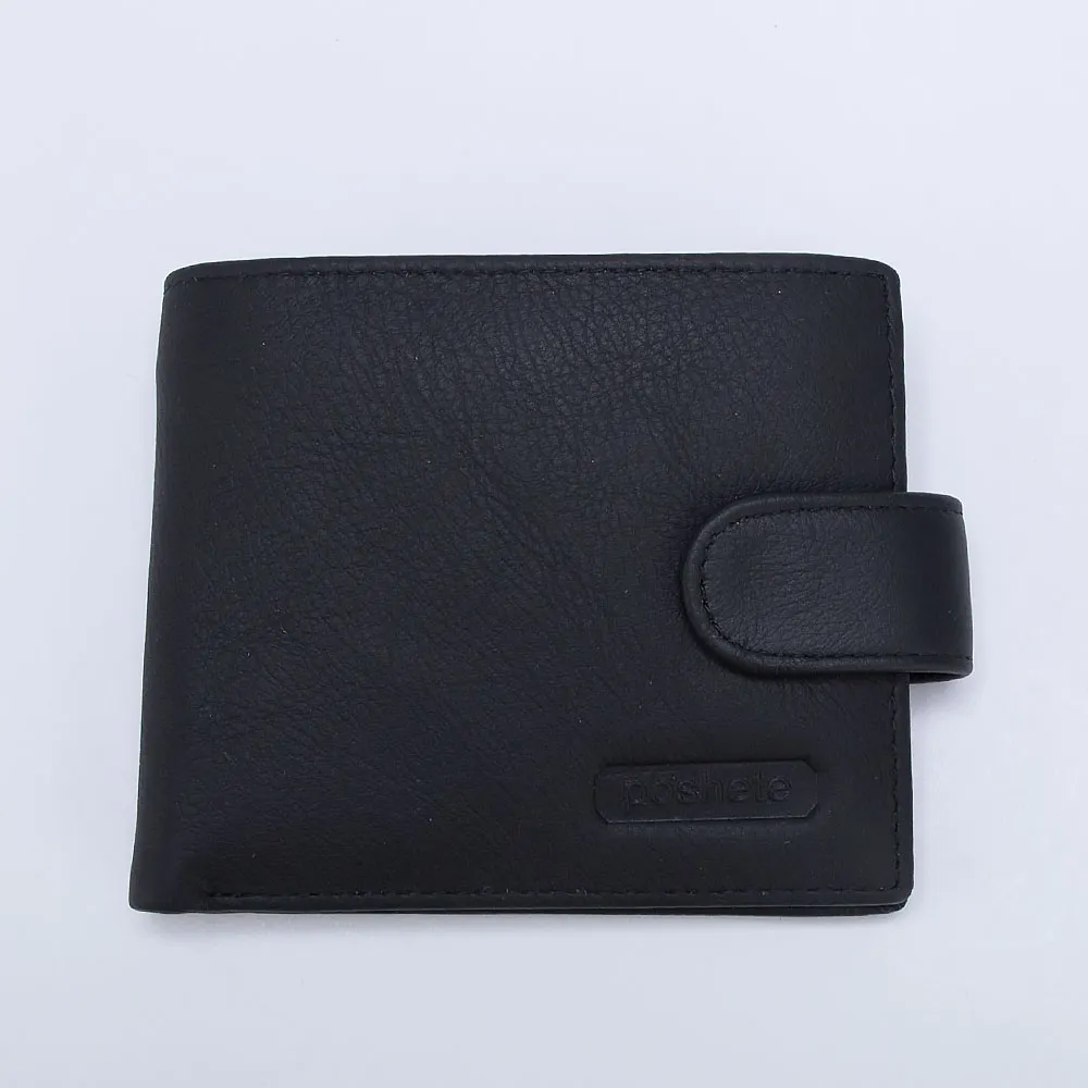 Классический мужской кошелек популярного бренда Poshete сшит из качественной натуральной кожи универсального черного цвета. Внутри два отделения для купюр, карман на кнопке для монет, три отсека для пластиковых карт. Аксессуар закрывается на узкий клапан, с лицевой стороны декорирован фирменным тиснением.