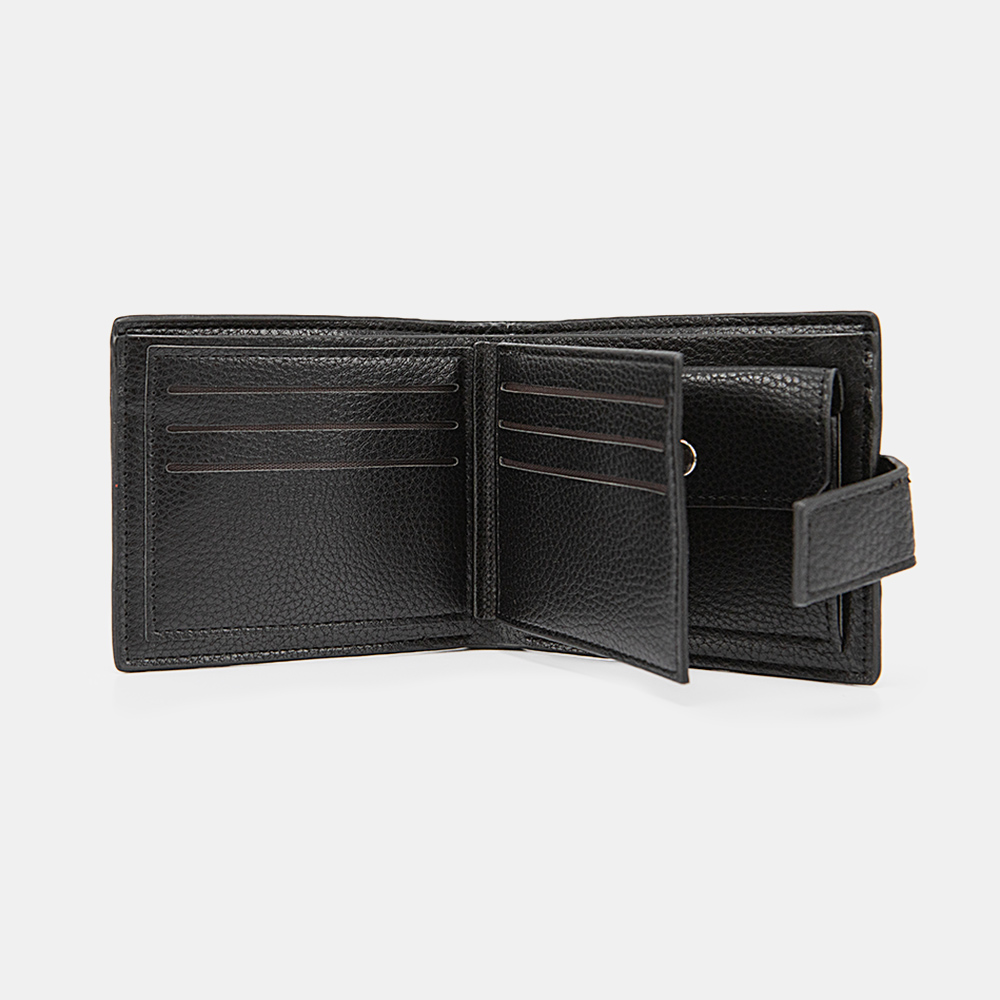 Кошелек от торговой марки Passo Avanti из искусственной кожи в сочетании коричневого и черного цвета с контрастной отстрочкой. Закрывается хлястиком на кнопку, имеет одно сложение. Отделение для купюр, карман на молнии, карманы для карт, перегородка с карманами для карт и карманом-окошком, карман для монет с клапаном на кнопке.