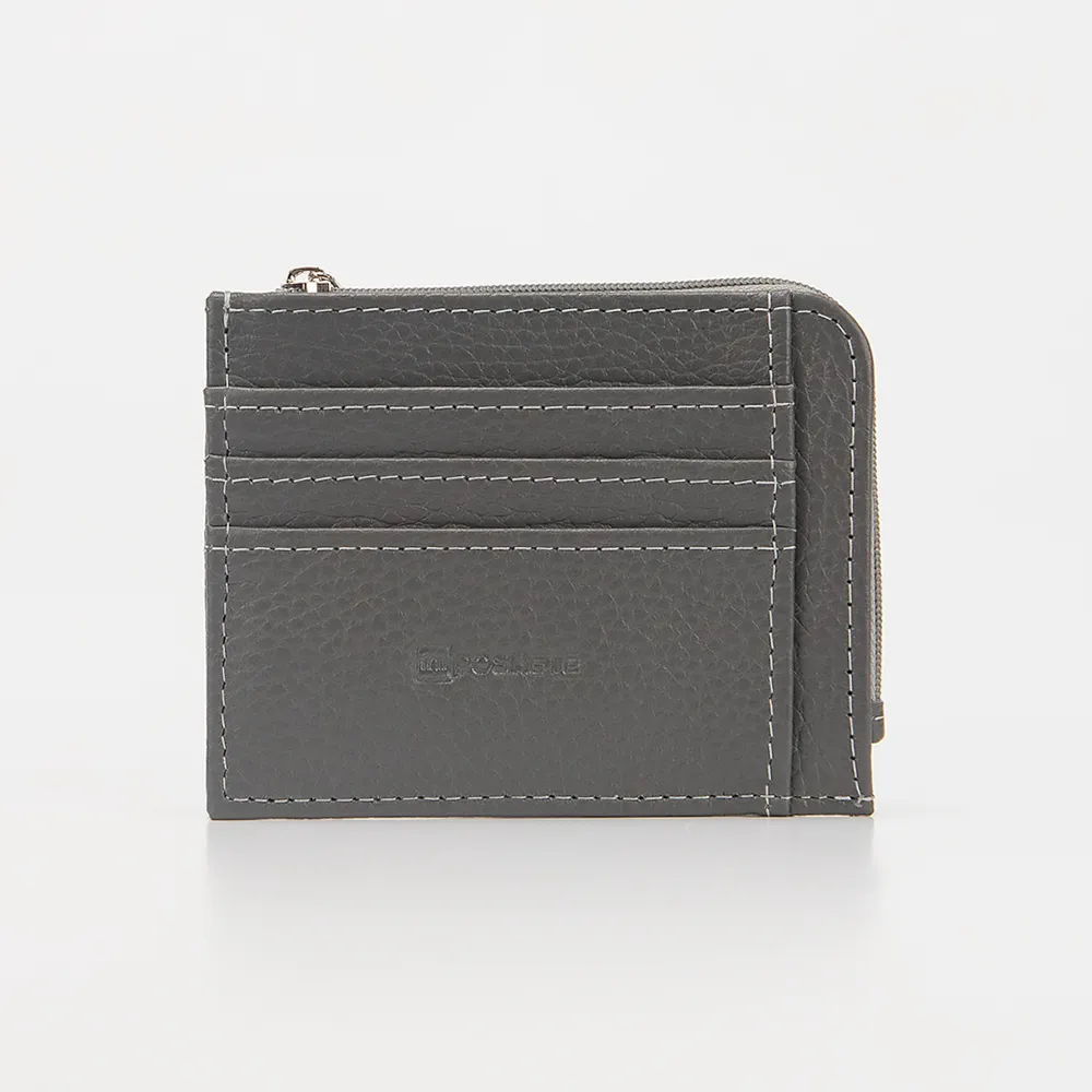 Кредитница от торговой марки Poshete из натуральной кожи серого цвета. Модель с отделением на молнии и карманами для карт по обеим сторонам.