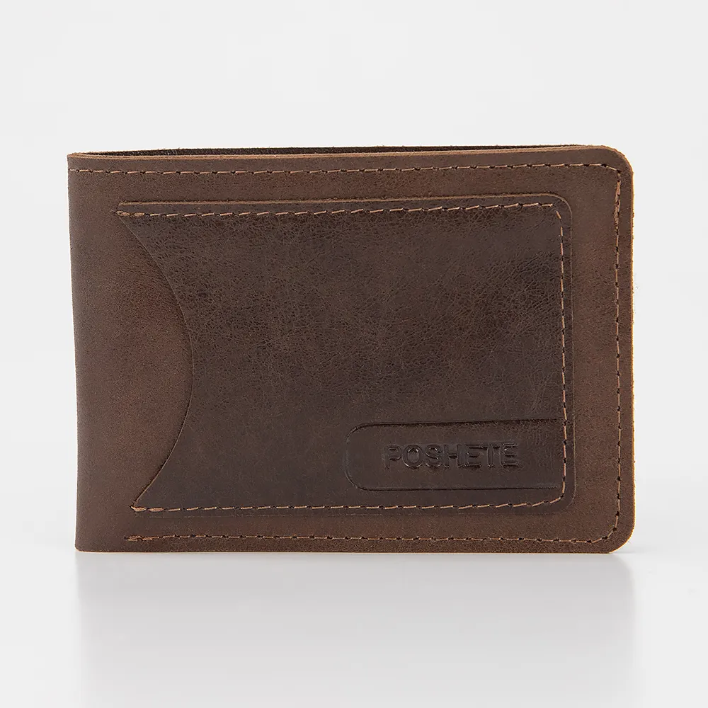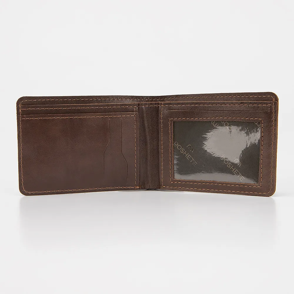 Кошелек от торговой марки Poshete из натуральной кожи коричневого цвета. Раскрывается книжкой. Внутри отделение для купюр, для карт, карман-окошко. С лицевой и с задней стороны - карман для карт.
