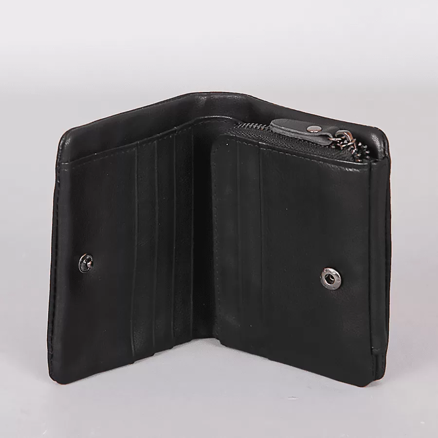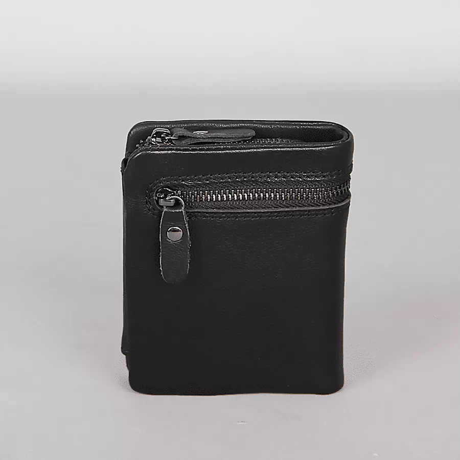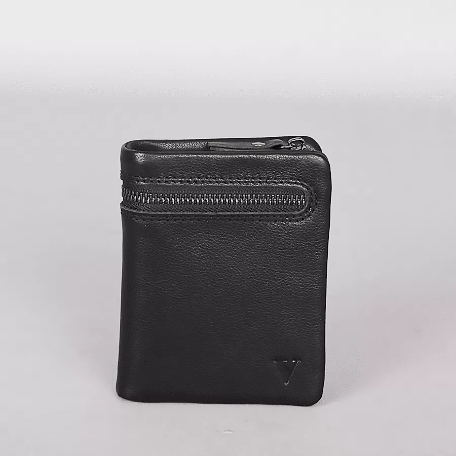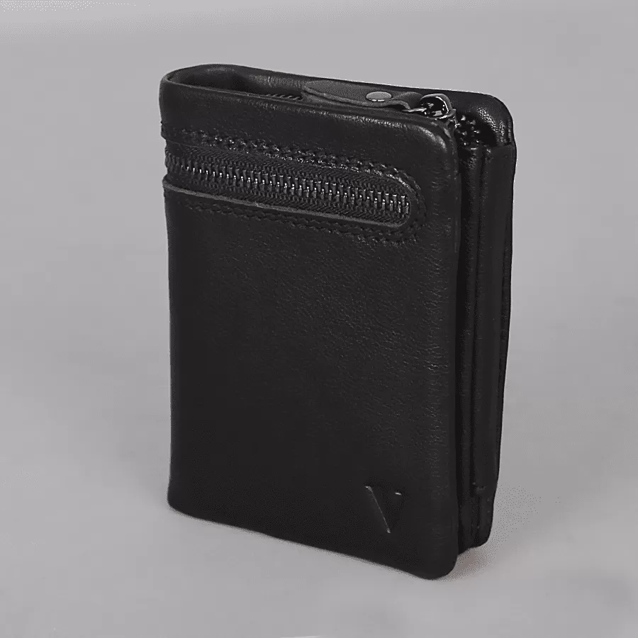 Стильный кошелек бренда Valigetti, выполненный из натуральной кожи, представлен в черном цвете. Спереди расположен карман с металлической молнией, который придает ему особый шарм. Этот кошелек не только красив, но и очень удобен в использовании. Он складывается втрое, и внутри есть десять отделений для пластиковых карт. Также есть отдельный карман с сеткой и карманом на молнии, а также отделение для купюр. Кошелек застегивается на кнопки, что обеспечивает дополнительную безопасность для ваших ценных вещей.