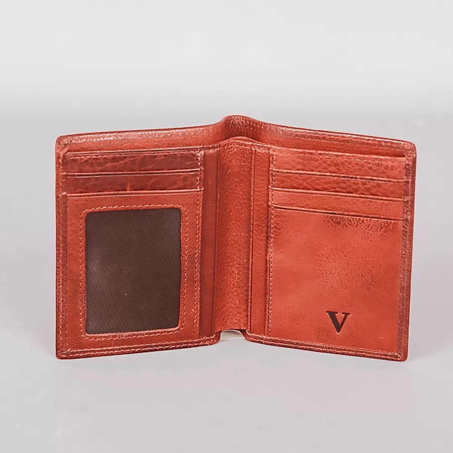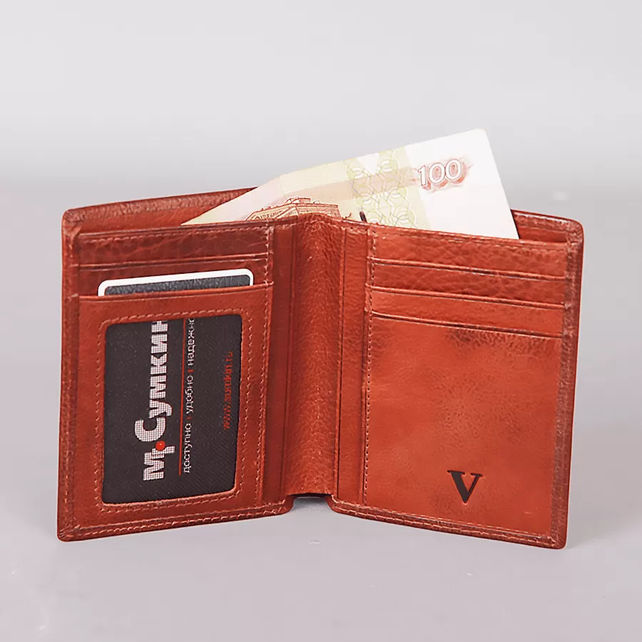 Классический кошелек бренда Valigetti выполнен из натуральной кожи и имеет коричневый цвет. Модель открывается книжкой и внутри содержит девять отделений для пластиковых карт, одно прозрачное окошко с сеткой и два отделения для купюр.