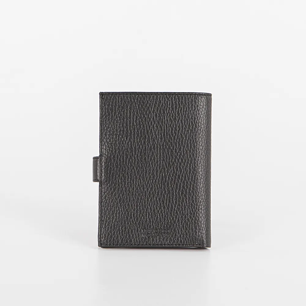 Элегантный мужской бумажник от бренда Francesco Molinary выполнен из натуральной мягкой кожи классического черного цвета и дополнен декоративной прострочкой. Внутри отделение для купюр, а также для паспорта и автодокументов. Аксессуар с застежкой на ремешок на кнопке.