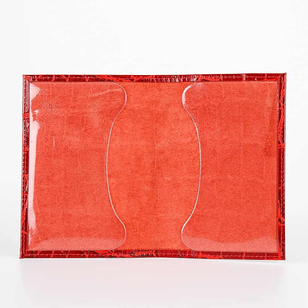 Обложка для паспорта от бренда Poshete. Аксессуар из натуральной мягкой кожи классического красного цвета с тиснением под кожу рептилии.