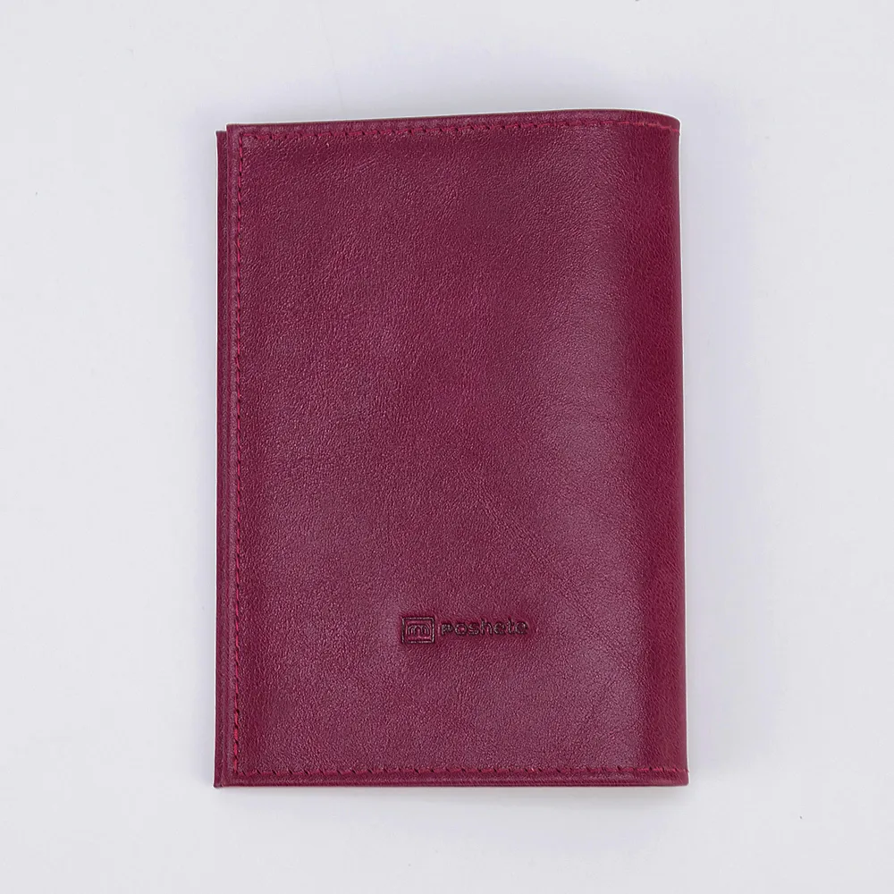 Обложка на паспорт от бренда Poshete выполнена из натуральной кожи красного цвета. Модель раскрывается книжкой. Внутри – прозрачные клапаны. Лицевая сторона декорирована тиснением с российским гербом.