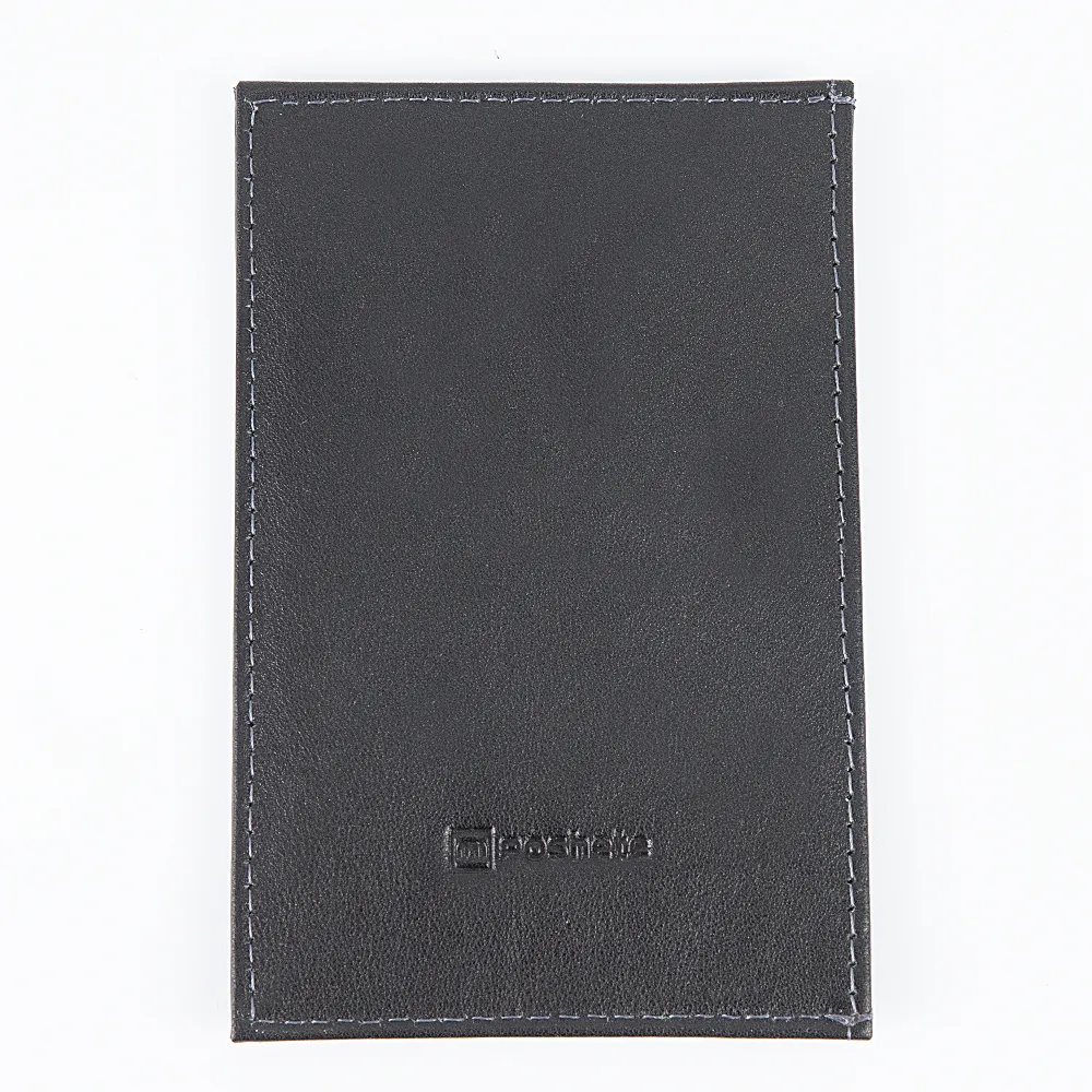 Обложка автодокументов от торговой марки Poshete из натуральной кожи черного цвета. Модель с отделением для документов и карманами для карт.