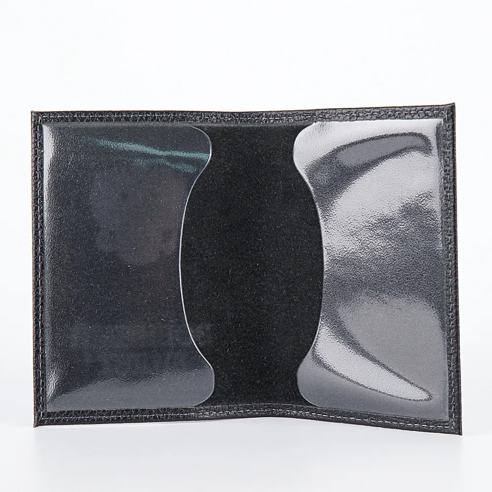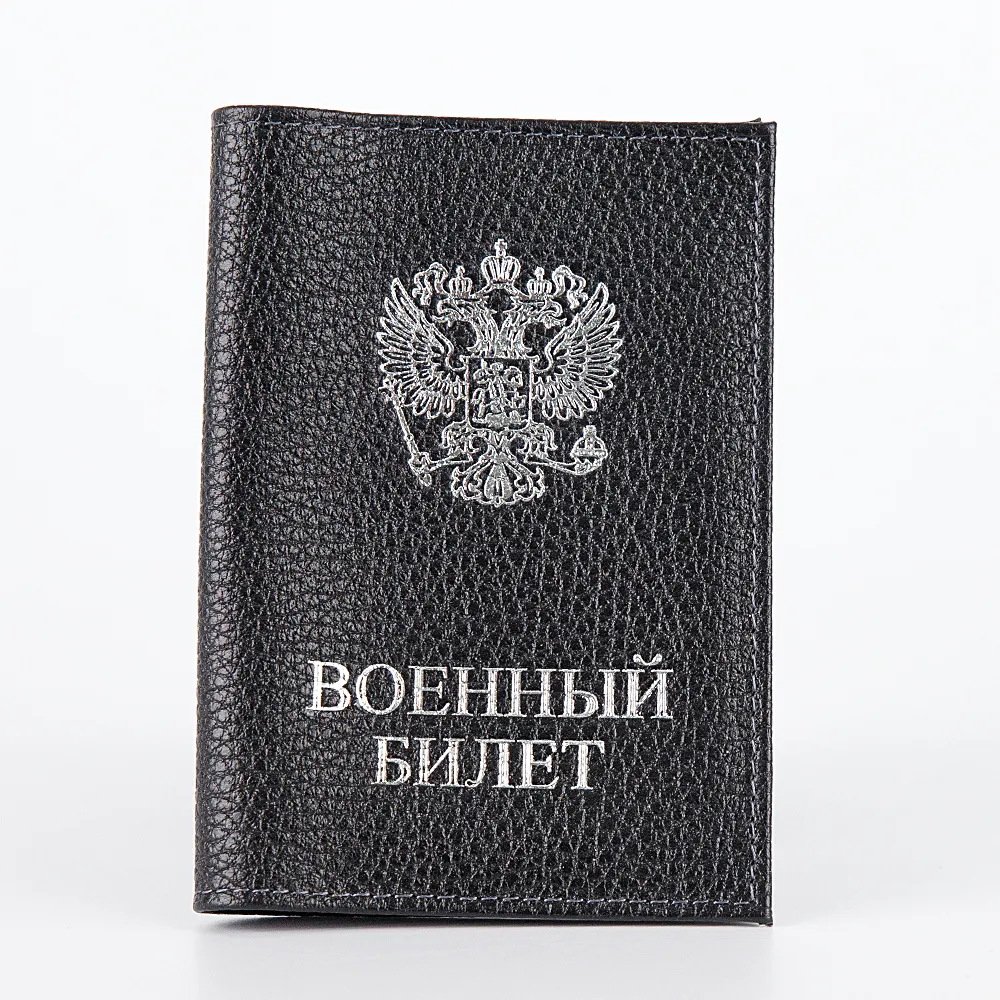 Обложка на Военный билет от бренда Poshete выполнена из натуральной мягкой кожи черного цвета с изображением герба России и надписью серебряного цвета.