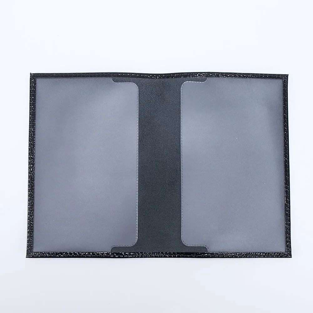 Обложка для паспорта от бренда Poshete выполнена в черном цвете из натуральной мягкой кожи и дополнена тиснением под кожу каймана.