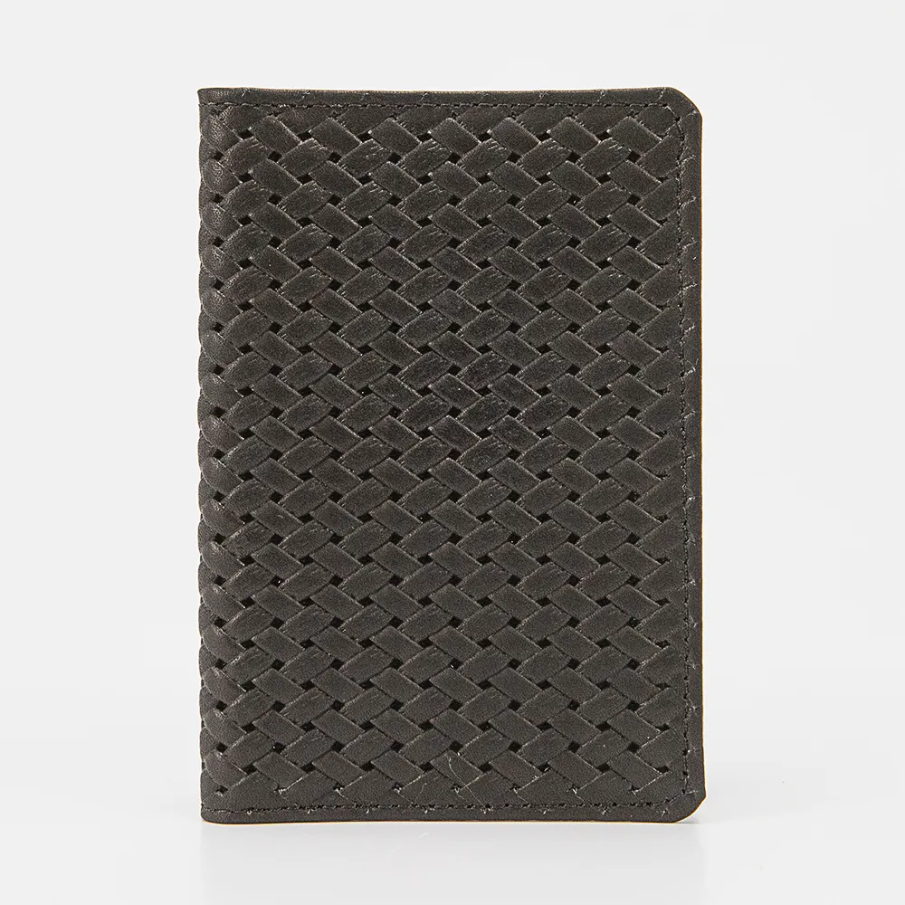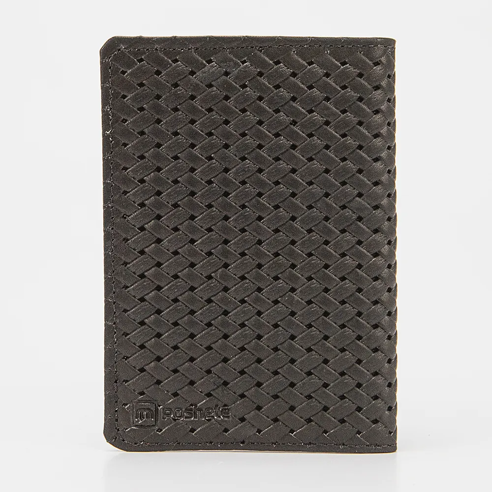 Обложка для паспорта от торговой марки Poshete из натуральной кожи черного цвета. Декорирована плетением. Внутри: прозрачные клапаны для паспорта.