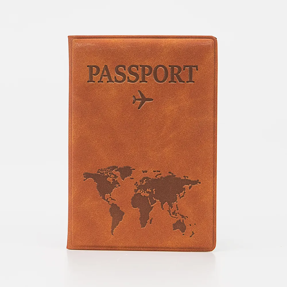 Обложка для паспорта от торговой марки Poshete из натуральной кожи ярко-коричневого цвета. Декорирована тиснением с картой мира и надписью: «Passport». Внутри: клапаны для паспорта и карман для карт.