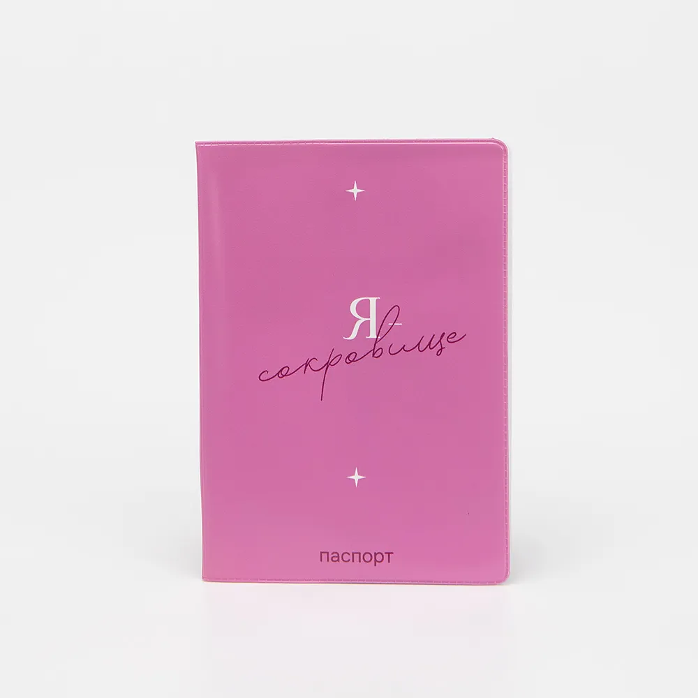 Обложка для паспорта от торговой марки ILikeGift из пластика цвета фуксия. Декорирована оригинальным принтом с текстом. Внутри: прозрачные клапаны.