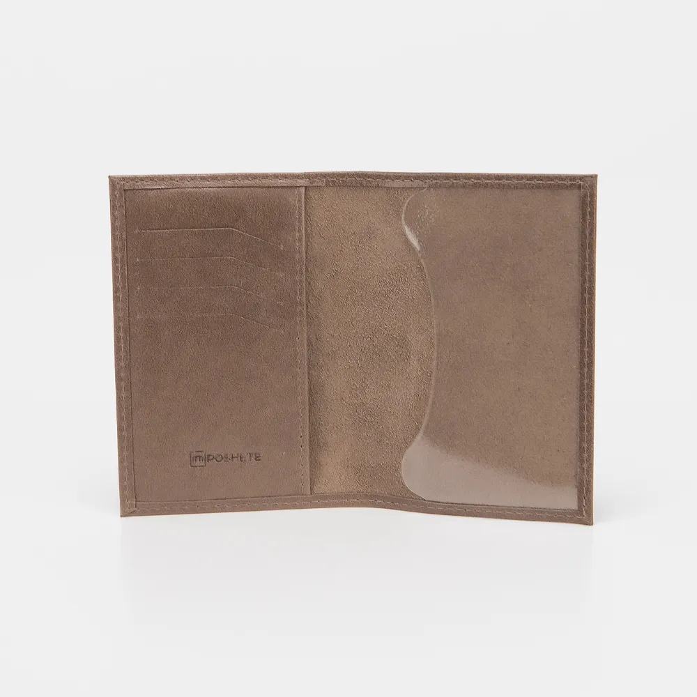 Обложка для паспорта от торговой марки Poshete выполнена из натуральной кожи бежевого цвета. Лицевая сторона декорирована тиснением с гербом России и надписью: «Russia. Passport». Модель раскрывается книжкой. Внутри - карманы для карт и прозрачный клапан.