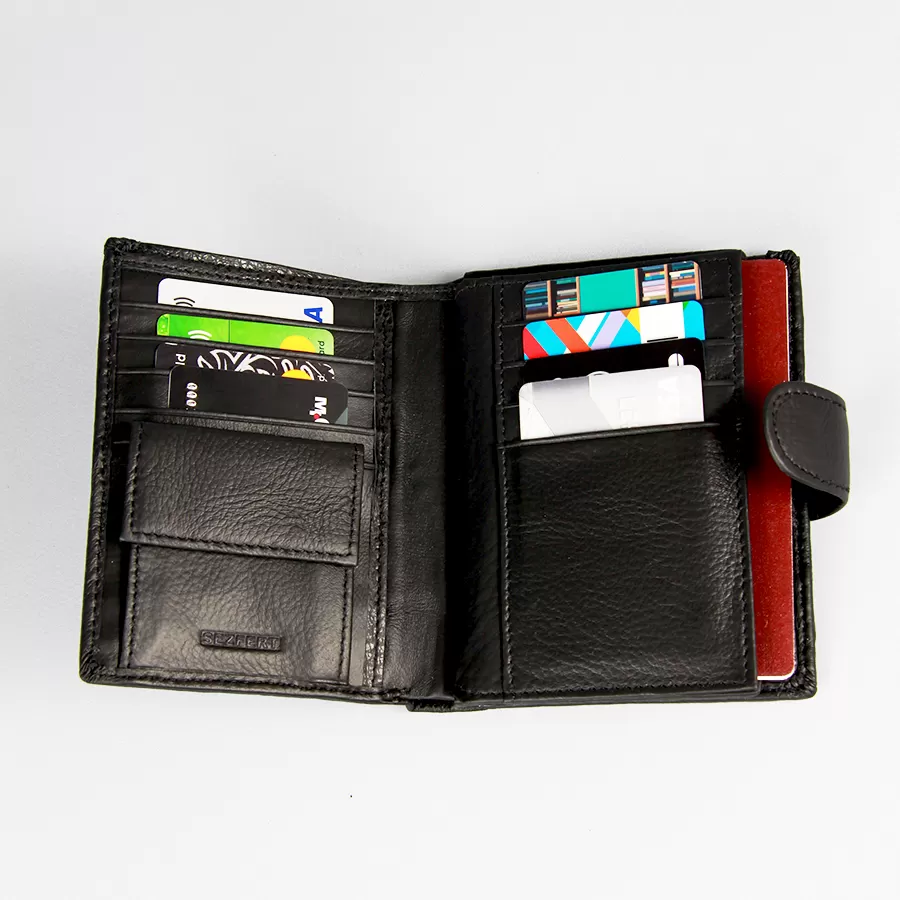 - Мужское портмоне фирмы SEZFERT из качественной натуральной кожи может использоваться как портмоне для денег и обложка для автодокументов и паспорта.