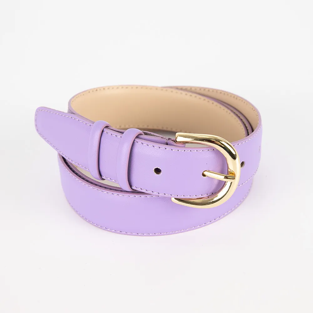 Ремень от торговой марки Mayer изготовлен из натуральной кожи сиреневого цвета. Модель шириной 35 мм, длиной до 110 см. Две шлевки, пряжка закругленной формы.