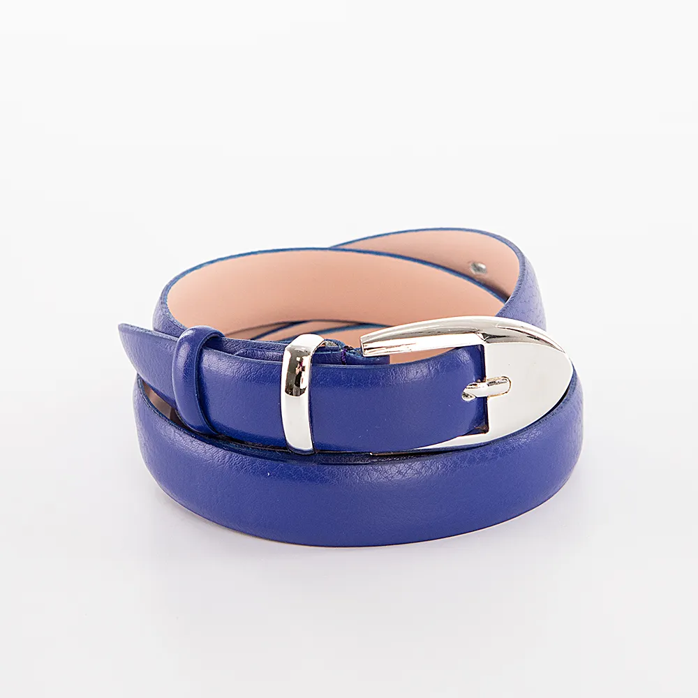 Женский ремень от торговой марки Mayer изготовлен из натуральной кожи синего цвета. Модель шириной 2 см, длиной до 110 см.
