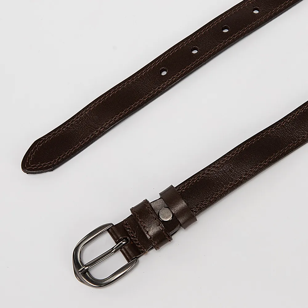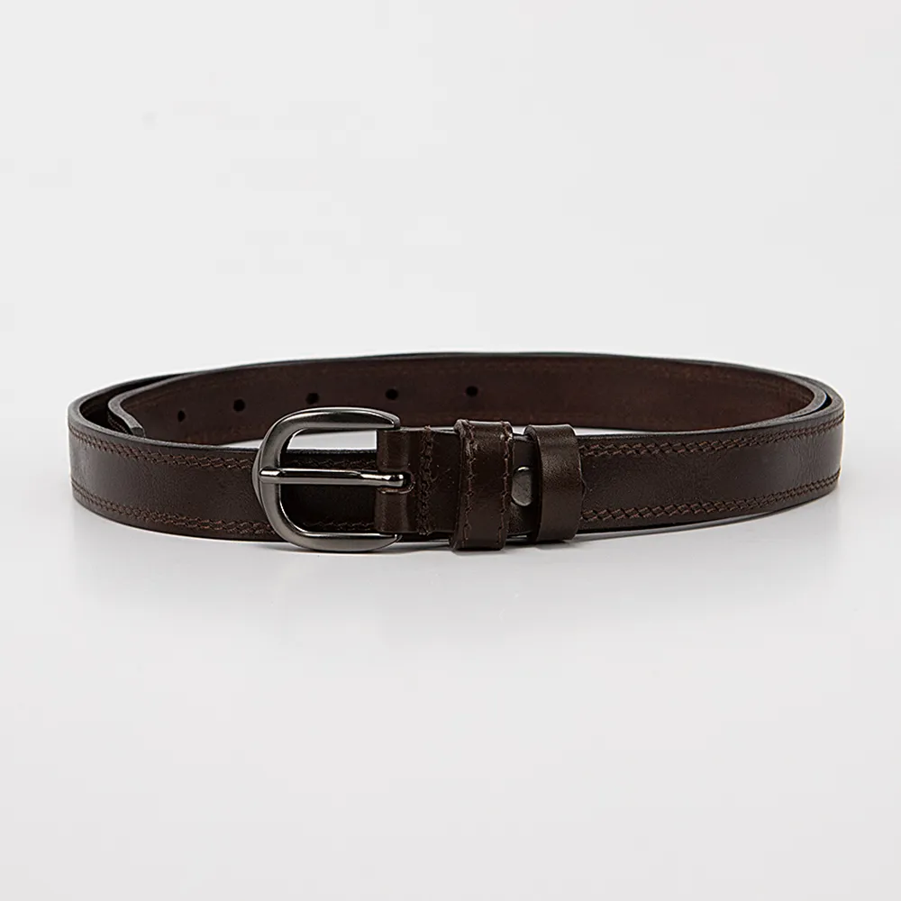 Женский ремень от торговой марки Poshete из натуральной кожи. Модель шириной 2,5 см, длиной 111-115 см. Размер: L. Металлическая пряжка, две шлевки. Декорирован и усилен двойной отстрочкой.