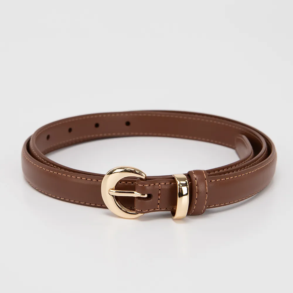Женский ремень от торговой марки Poshete из натуральной кожи. Модель шириной 2 см, длиной 95-105 см. Размер: S. Металлическая пряжка, две шлевки. Декорирован отстрочкой.