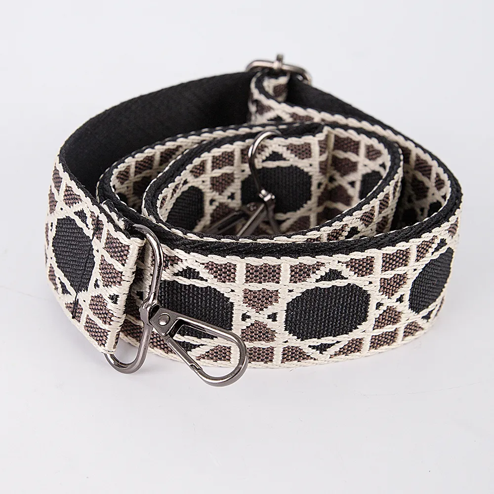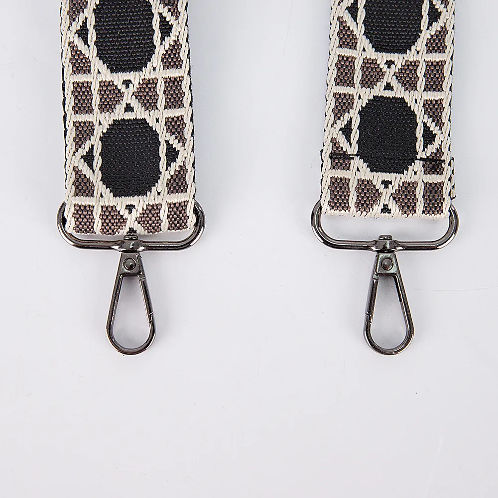 Съемный регулируемый ремень на сумку выполнен из текстильного материала с оригинальным узором. Модель шириной 3,7 см и длиной 140 см на карабинах. Универсальный ремень подойдет к любой сумке.
