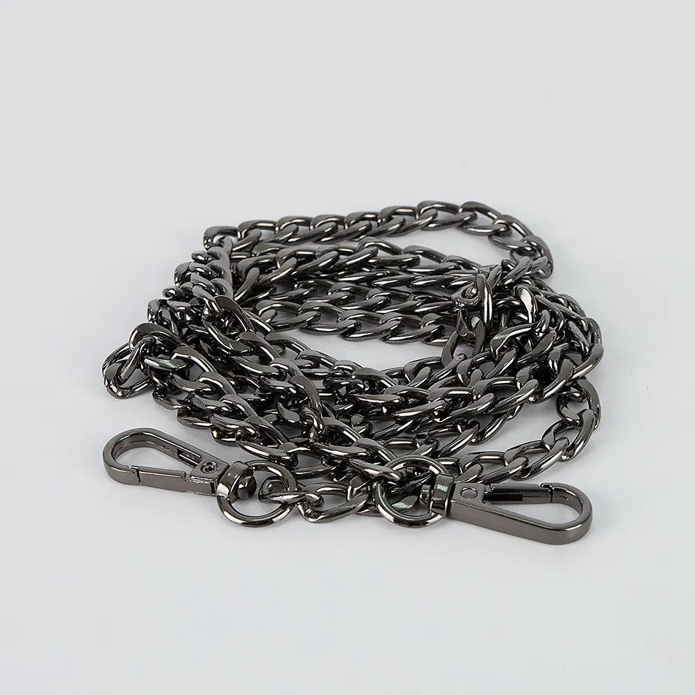 Съемный металлический ремень для сумки цвета черный никель. Модель длиной 120 см на карабинах.