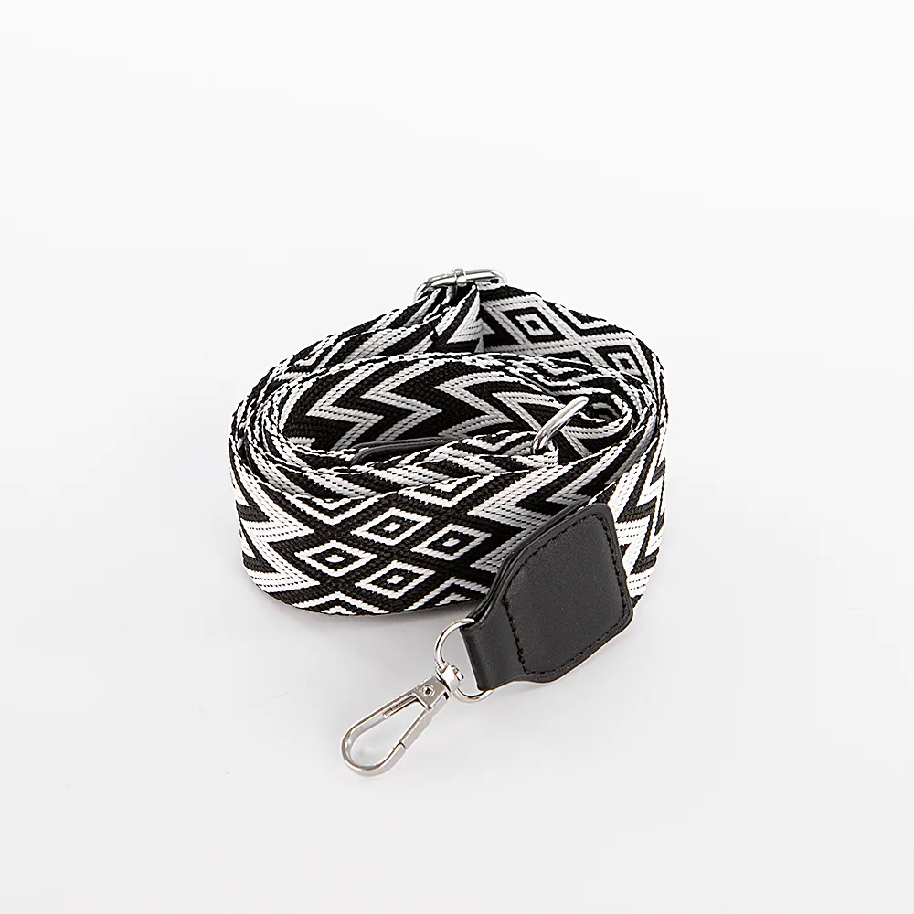 Съемный регулируемый ремень на сумку от торговой марки Passo Avanti выполнен из текстильного материала и искусственной кожи черного цвета с орнаментом. Модель шириной 3,7 см и длиной 140 см на карабинах. Универсальный ремень подойдет к любой сумке.