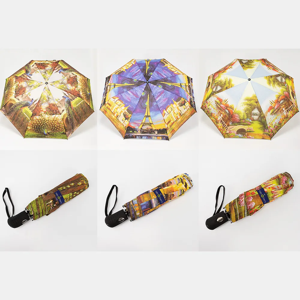 Зонт от торговой марки Rain Berry с материалом купола из практичного эпонжа. Купол декорирован оригинальным принтом с городским пейзажем. Модель с механизмом автомат имеет 3 сложения, 8 спиц, радиус купола – 58 см, диаметр – 103 см. Прямая пластиковая ручка с лямкой. Товар представлен в двух вариантах. Просим уточнять расцветку в магазинах Вашего города или в комментариях при заказе на сайте. Подходящий вариант подбирается, исходя из наличия.