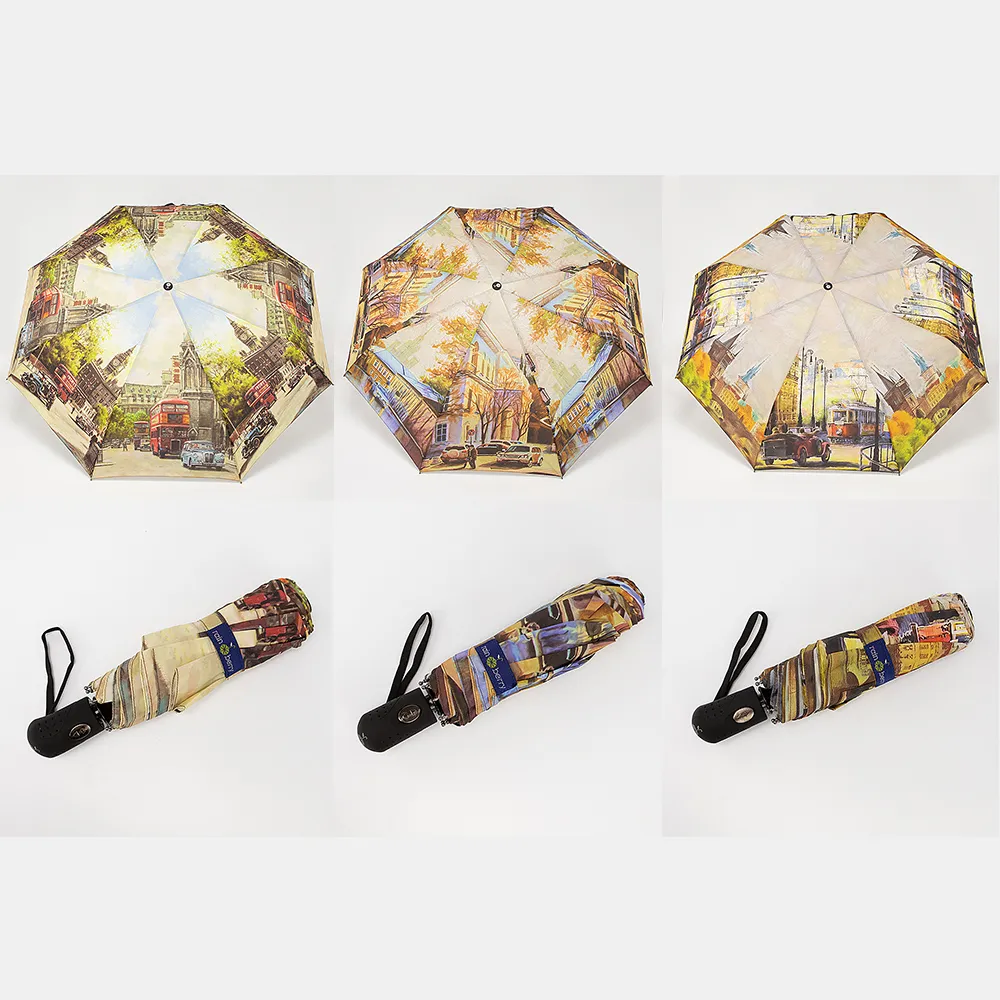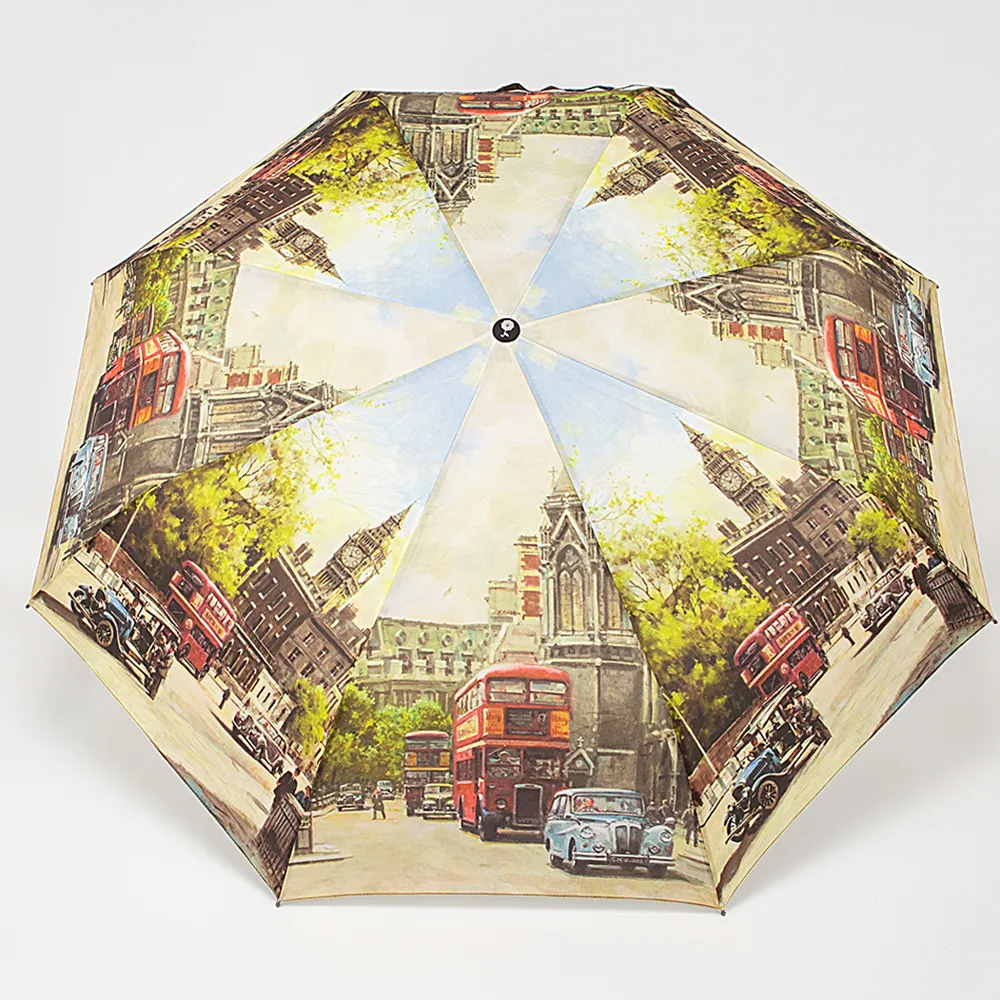 Складной зонт-автомат от торговой марки Rain Berry с материалом купола из эпонжа. Декорирован оригинальным ярким принтом с изображением городского пейзажа. Модель автомат имеет 3 сложения, 8 спиц, диаметр купола - 99 см, радиус – 56 см. Фото являются ознакомительными. Товар представлен в ассортименте. Просим уточнять расцветку в магазинах Вашего города или в комментариях при заказе на сайте. Подходящий вариант подбирается, исходя из наличия.