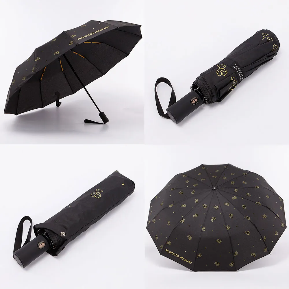 Зонт от торговой марки Francesco Molinary с материалом купола черного цвета. Декорирован принтом с изображение мишек. Модель автомат с функцией «антиветер», 12 двойных усиленных спиц, диаметр купола – 103 см. Прорезиненная ручка с ремешком. В комплекте чехол. Товар представлен в ассортименте. Фотографии являются ознакомительными. Подходящий вариант определяется, исходя из наличия. Просим уточнять расцветку в магазинах или в комментариях при заказе на сайте.