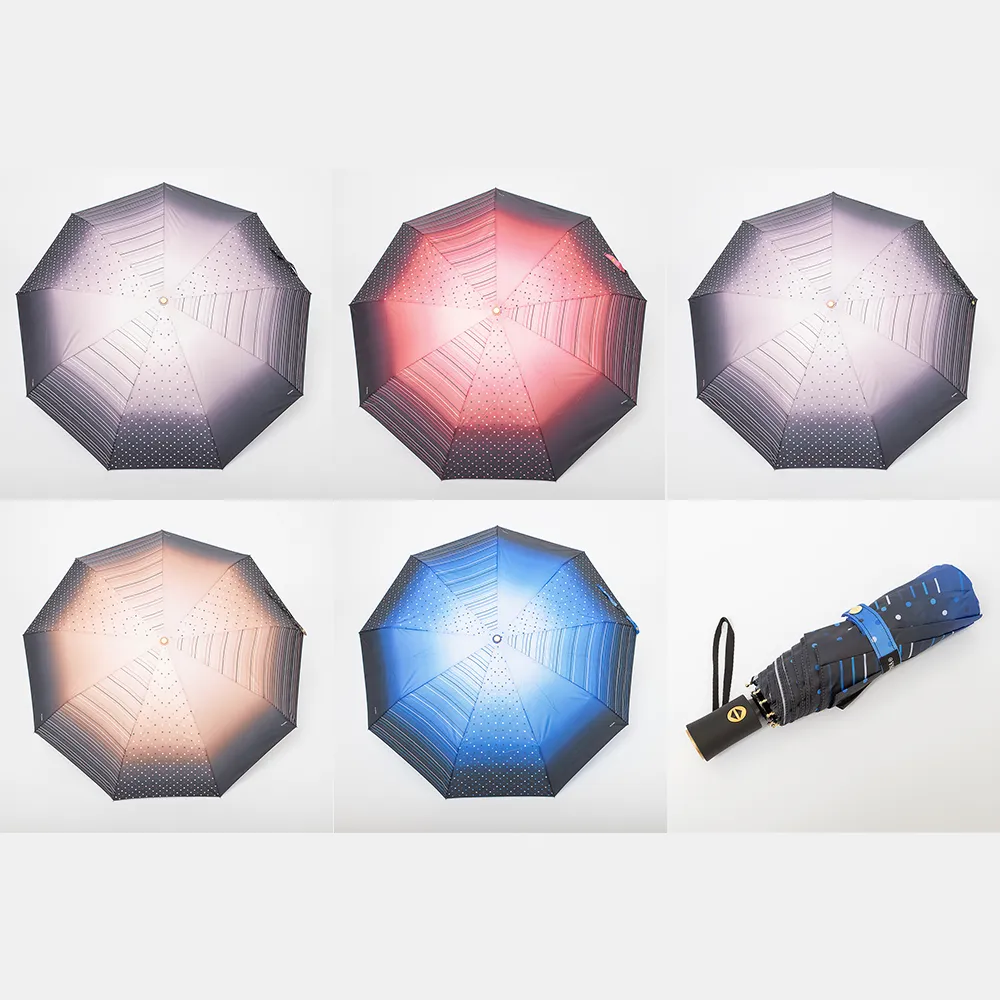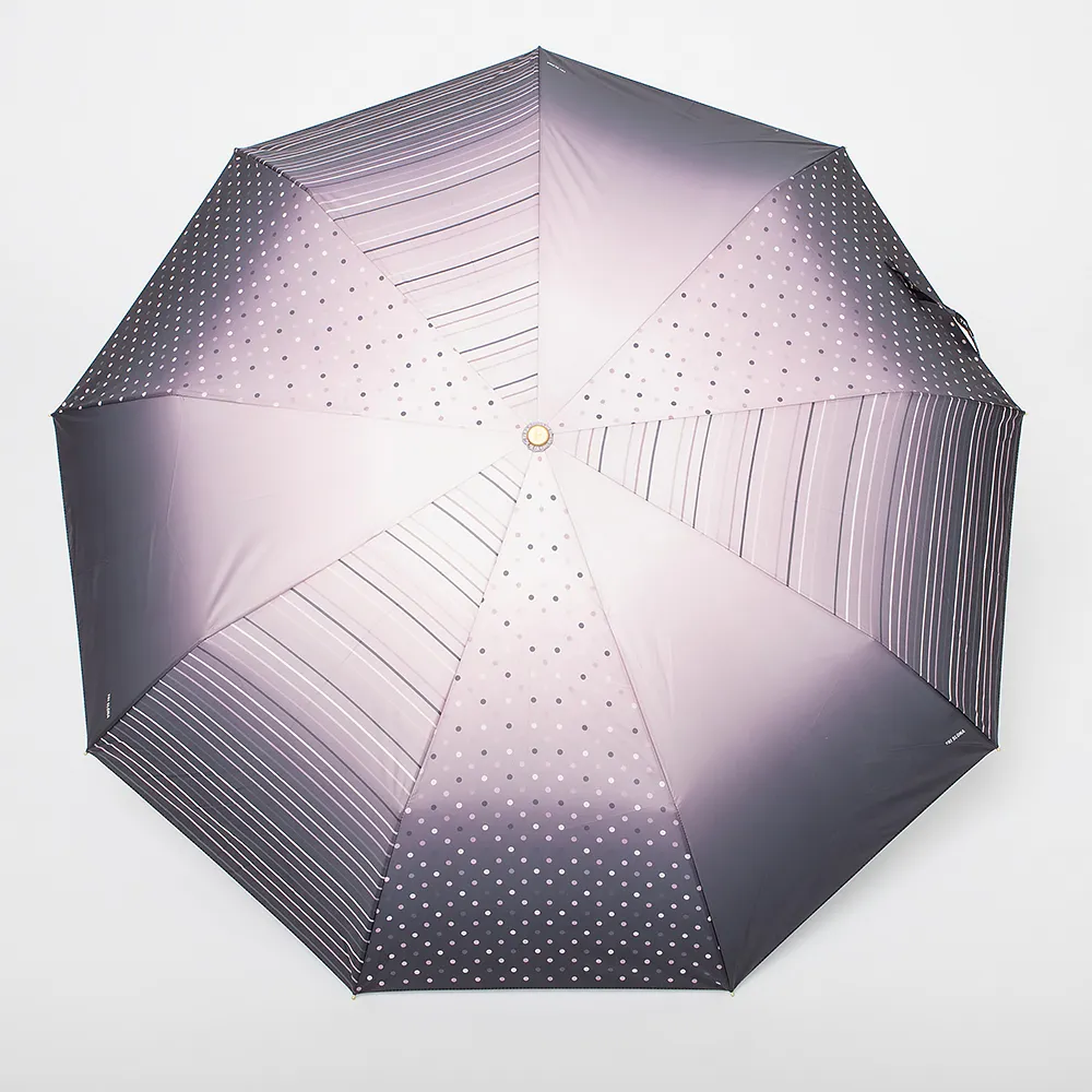 Складной зонт-автомат от торговой марки Tri Slona с материалом купола из эпонжа, декорированного принтом в горошек и в полоску с градиентным переходом цвета. Модель имеет 3 сложения, 9 спиц, радиус купола – 58 см, диаметр – 103 см. Материал каркаса из стали и фибергласса. Прямая пластиковая ручка. Длина в сложенном состоянии – 29 см. Товар представлен в ассортименте. Фотографии являются ознакомительными. Подходящий вариант определяется, исходя из наличия. Просим уточнять расцветку в магазинах или в комментариях при заказе на сайте.