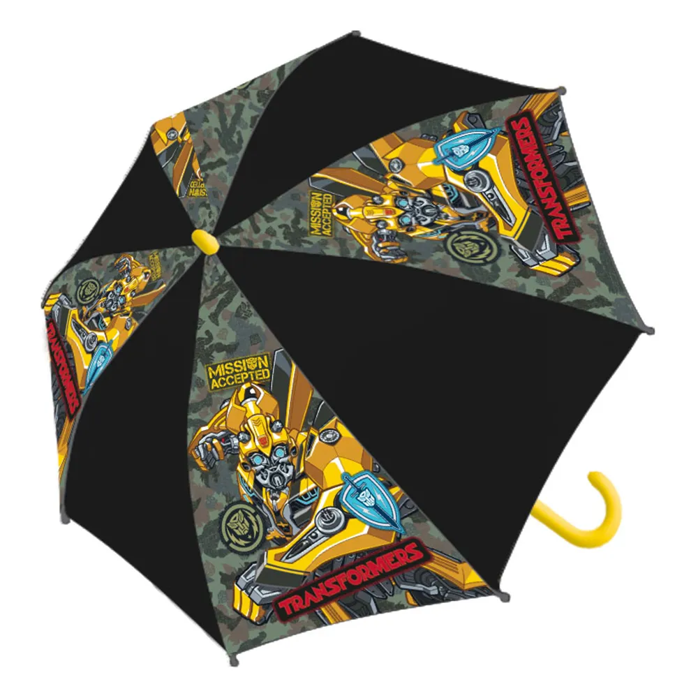 Механический детский зонт-трость Transformers с материалом купола из полиэстера в сочетании черного и желтого цвета; декорирован принтом с изображением героя Трансформеров (Transformers) – Бамблби. Модель имеет 8 спиц, диаметр купола – 71 см, радиус купола - 40 см. Удобная пластиковая ручка-крюк. Раскрывается вручную. В сложенном виде застегивается на кнопку. Товар представлен в ассортименте. Фотографии являются ознакомительными. Подходящий вариант определяется, исходя из наличия. Просим уточнять расцветку в магазинах или в комментариях при заказе на сайте.