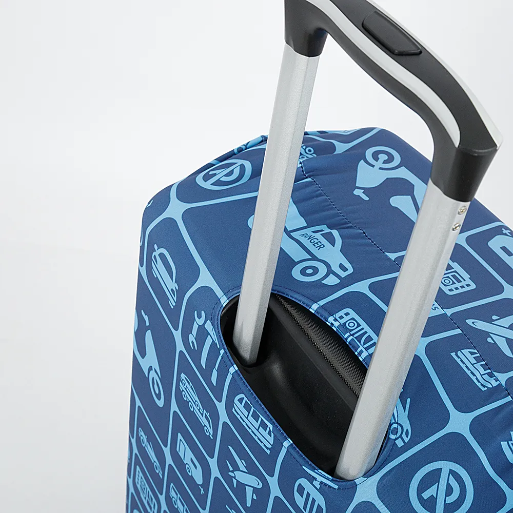 Эластичный чехол для чемодана от бренда Grott. Дорожный аксессуар поможет предохранить багаж от загрязнений, вскрытий и мелких повреждений. Чехол тянется, подходит для чемоданов с диагональю от 26 до 28 дюймов. Застёгивается снизу на три кнопки, имеет прорези для ручек багажа по бокам и сверху. Принт с надписью Don't Touch поможет быстро опознать свой чемодан на багажной ленте в аэропорту.